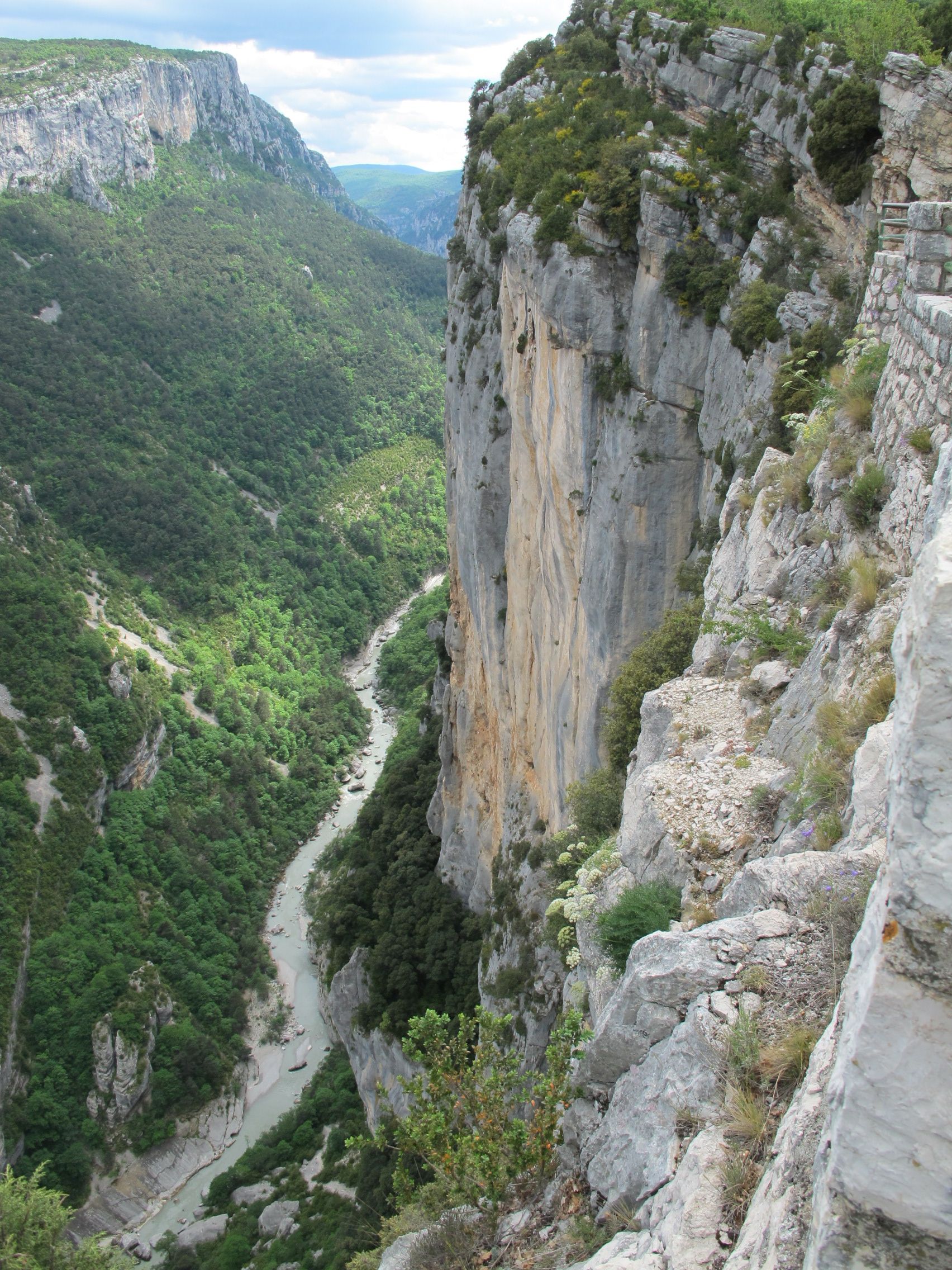 A bit further along the road, we get the first glances on the Grand Canyon du Verdon: as soon as the sun breaks through the cloudy sky, the gray-green river at the bottom of the canyon sparkles like a precious necklace of mother nature. Every now and then we stop for a view or even a short walk into the rural scenery.