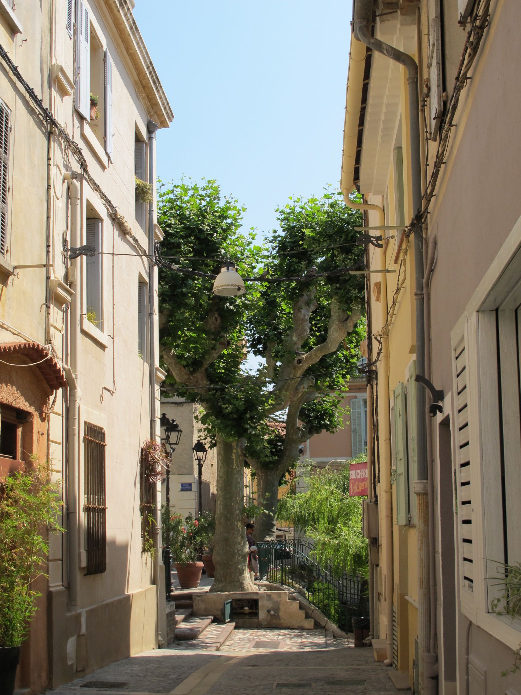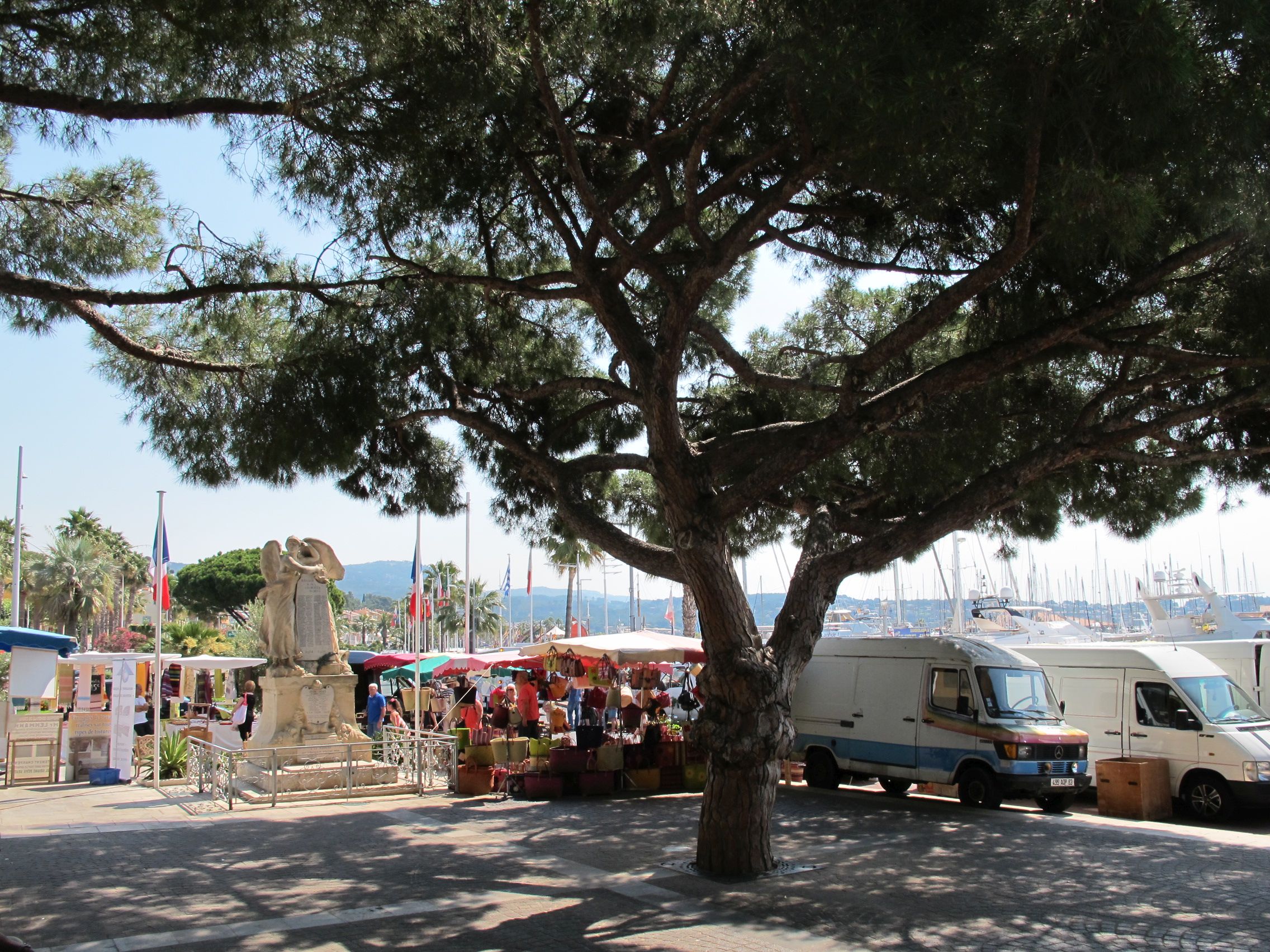 Lucky me that I have such a slim van! Driving through the narrow, very narrow streets of Bandol, I only touch a parking car once (in fact, a delivery van) and only with my left mirror. Which is flexible enough to fold in and thus generate enough space to continue the search for a parking slot. Once outside of the village again, this issue is solved easily and I set off for a walk on Bandol’s market: fresh fruits, cheese, fish, shoes, clothes, books, carpets and whatever else you have in mind is sold here. The numerous stands block the view to the yacht harbor and the small path among all offered temptations is crowded already in the morning.