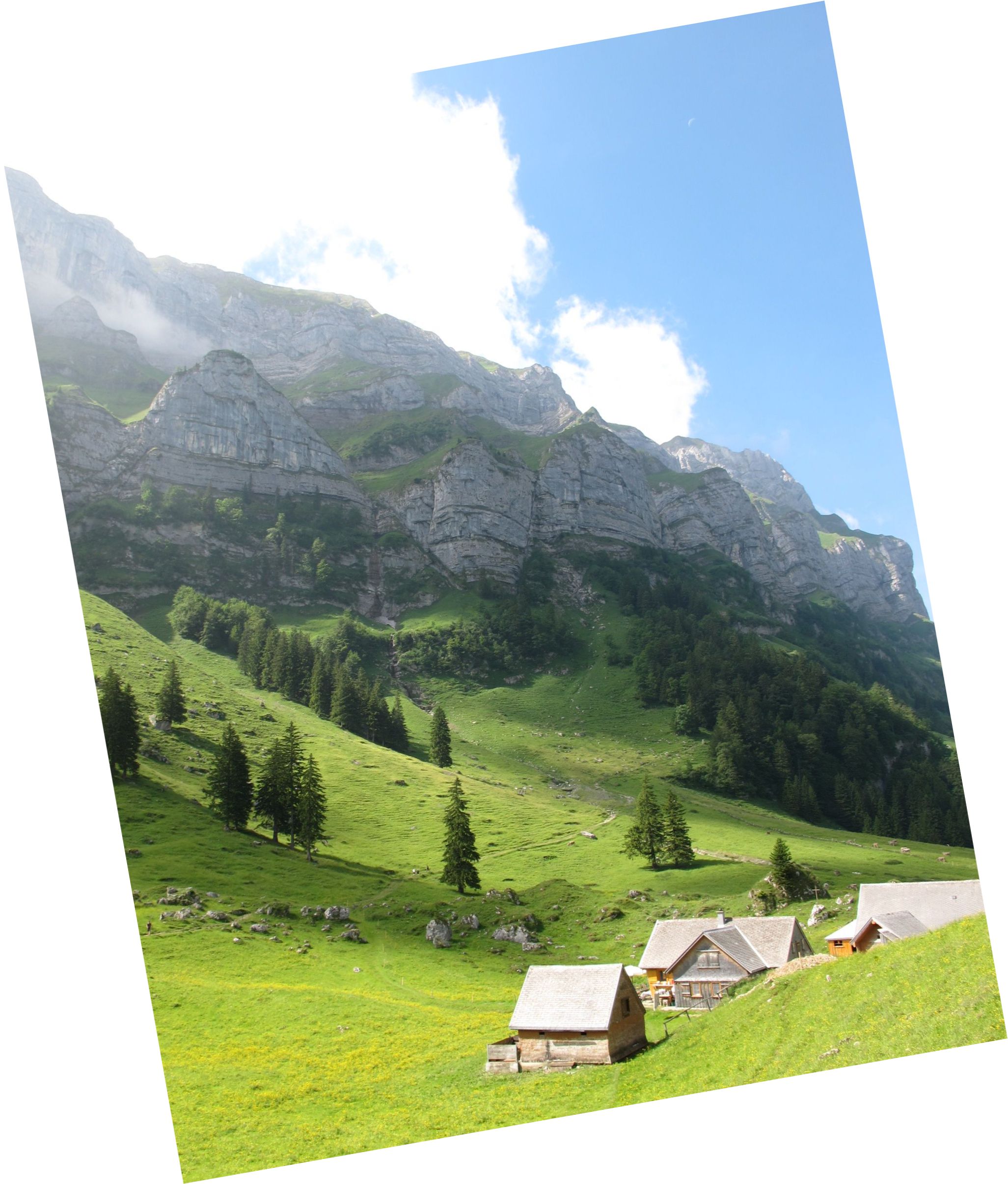 Nach der Durchfahrt von Appenzell führt ein schmales Asphaltband stetig und gelegentlich kurvig bergauf. Wie kommen hier eigentlich normal-große Reisemobile, Caravans oder anderes Getier aneinander vorbei?? Die einzige Begegnung während meiner 2,5-km-Anfahrt wird hauptsächlich vom lässig-versierten Fahrer des entgegenkommenden Wohnmobils gemeistert, während Hector sich schlank an den Fahrbahnrand stellt und den Bauch einzieht. Oben angekommen empfängt mich ein durchwürfelter Campingplatz mit akkurat aufgebauten und Hütten-bewehrten Dauercampern einerseits, großen Wiesenflächen für Zelte / Allrad-Mobile / Kleinwagen andererseits sowie ein grummliger Inhaber, der zur Haupt-Essenszeit (er ist zugleich der Küchenchef) stakkato-artig die wichtigsten Informationen herunterrasselt und binnen Sekunden zurück an die Töpfe springt. Für englische Übersetzung sind die Gäste zuständig, was üblicherweise gut funktioniert.