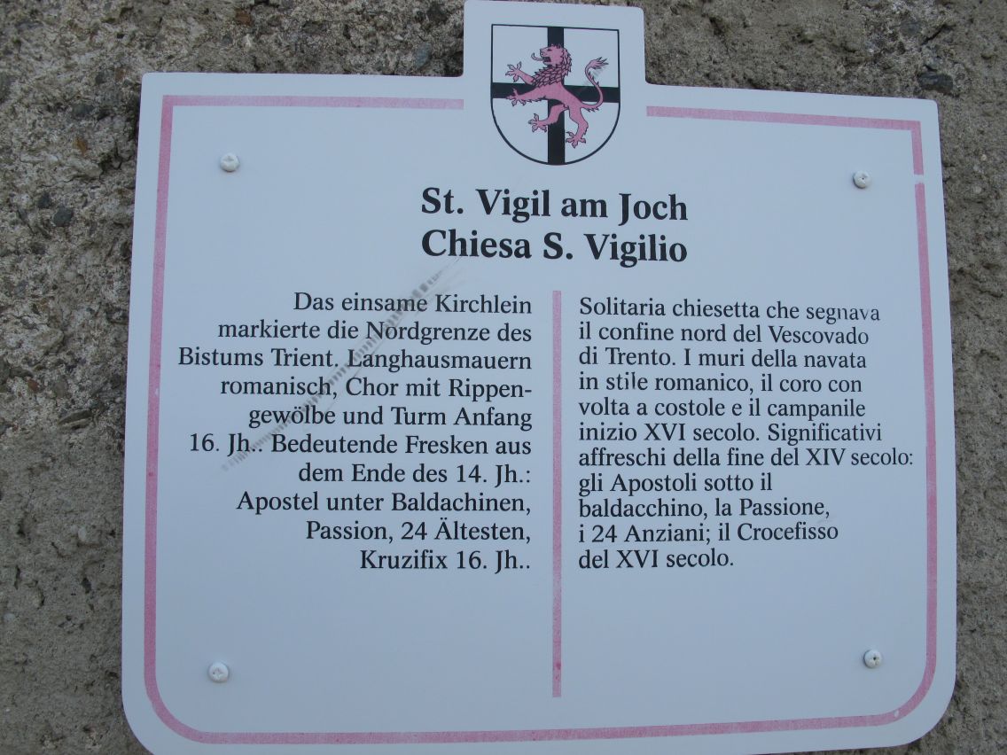 Belohnt werde ich dafür mit der Auswahl mehrerer Berggasthäuser und einer kleinen Kapelle, die oben auf dem Vigiljoch thront.