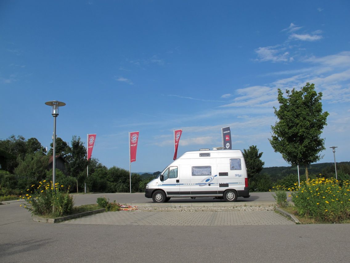 Der Irschenberg an der A8 ist der beste Stautest der Gegend: wenn es hier locker rollt, bin ich noch vor der großen Anreisewelle der nördlichen Bundesländer. Stress raus, Blinker rechts, 3. links und schon parkt der Bus souverän vor’m Dinzler. Kaffeerösterei, Frühstück und ideale Einkehr zwischen Wohnung und Ausflugsziel. Frisch gestärkt geht es weiter und schon 46 km weiter lasse ich die Inntal-Autobahn hinter mir und folge gewundenen Straßen bis zum Walchsee.