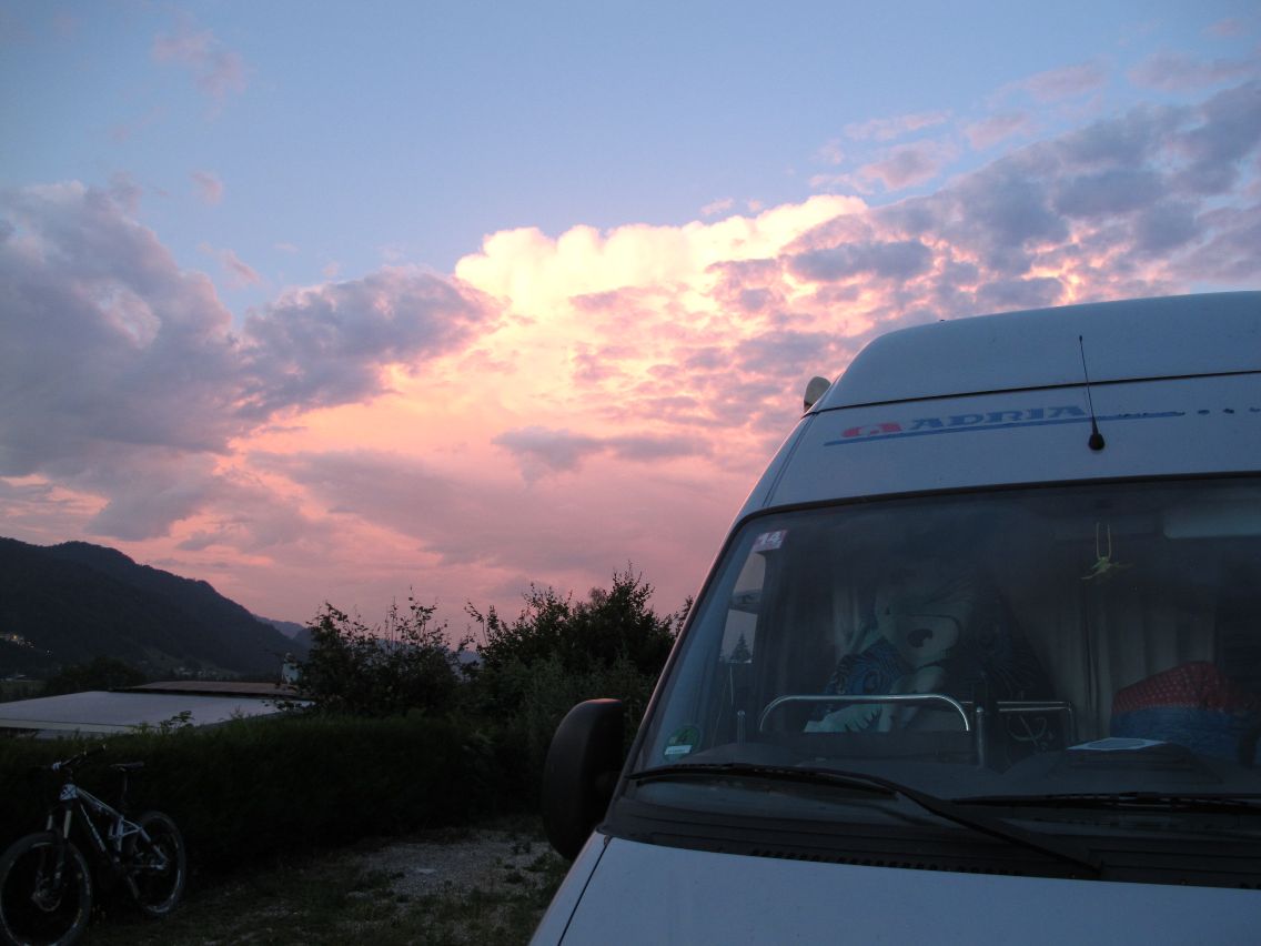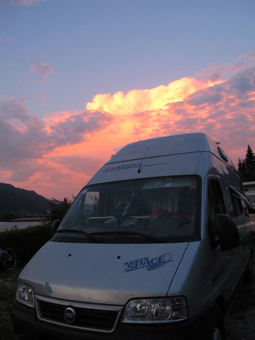 Rechtzeitig vor dem aufziehenden Gewitter bin ich zurück am Campingplatz und freue ich: beide Dachluken waren sperrangelweit offen; als Blondine muss man eben auch mal Glück haben!