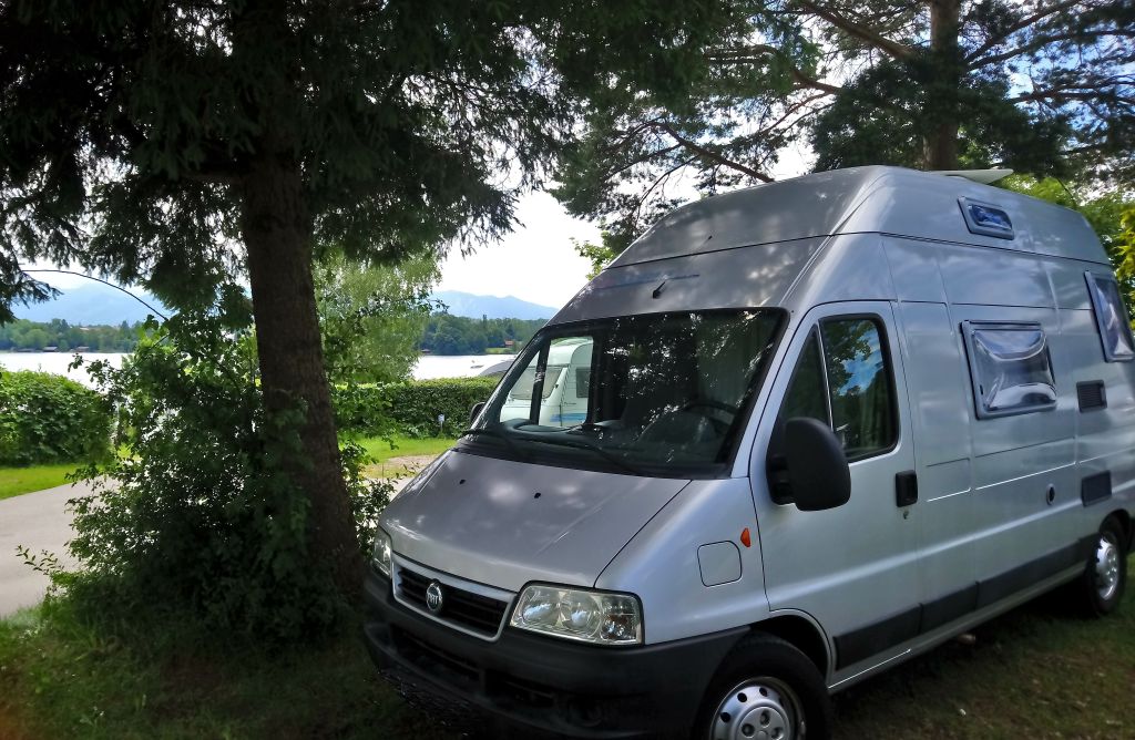 Good Karma is back! After some back and forth, misleading advice from the Staffelsee campsite and running against torrents of tourists, Hector jumps in the very last free spot between lake and Alps. Camping Riegsee turns out to be the most charming one: ripened sanitary rooms with the right focus (clean and proper rather than chic), friendly staff and relaxed guests. Any camper crossing by is smiling a hello to Hector and me while I sit around and inhale the view towards the mountains, Zugspitze included.