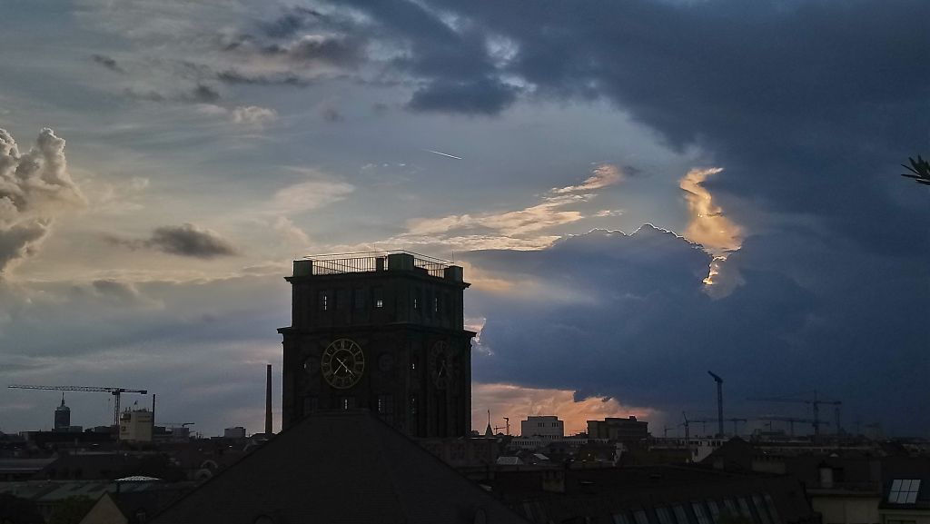 Dramatic skies frame our evening as we watch the sun dive deep into the clouds, the latter already covering the distant peaks of the Alps. Being all lazy on top, we witness private soccer players in the wonderful frontyard of the old Pinakothek.