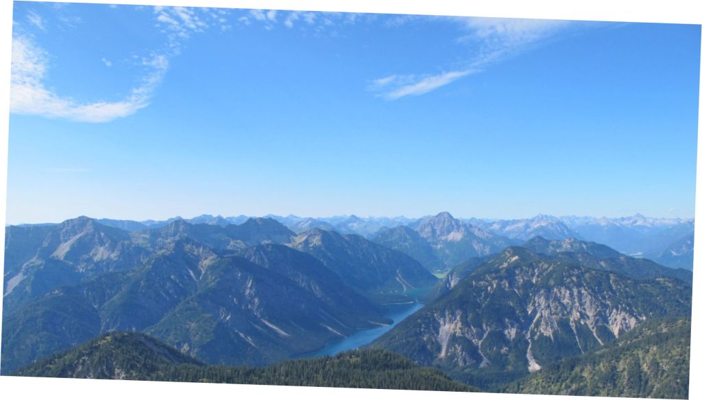 The last third of our descent tempts us to a half-knowledge decision: A short note in the tour description recommends a sideway via Schönjöchl – it just forgets to mention that it includes passing by a forth peak and adds about 150m altitude difference! Half way to it, we perceive the hard facts and turn around, finally taking the original way down. Around 6:00 p.m. we are back and safe at the Plansee, greedy for a portion of French fries and yearning for laziness on the sofa.