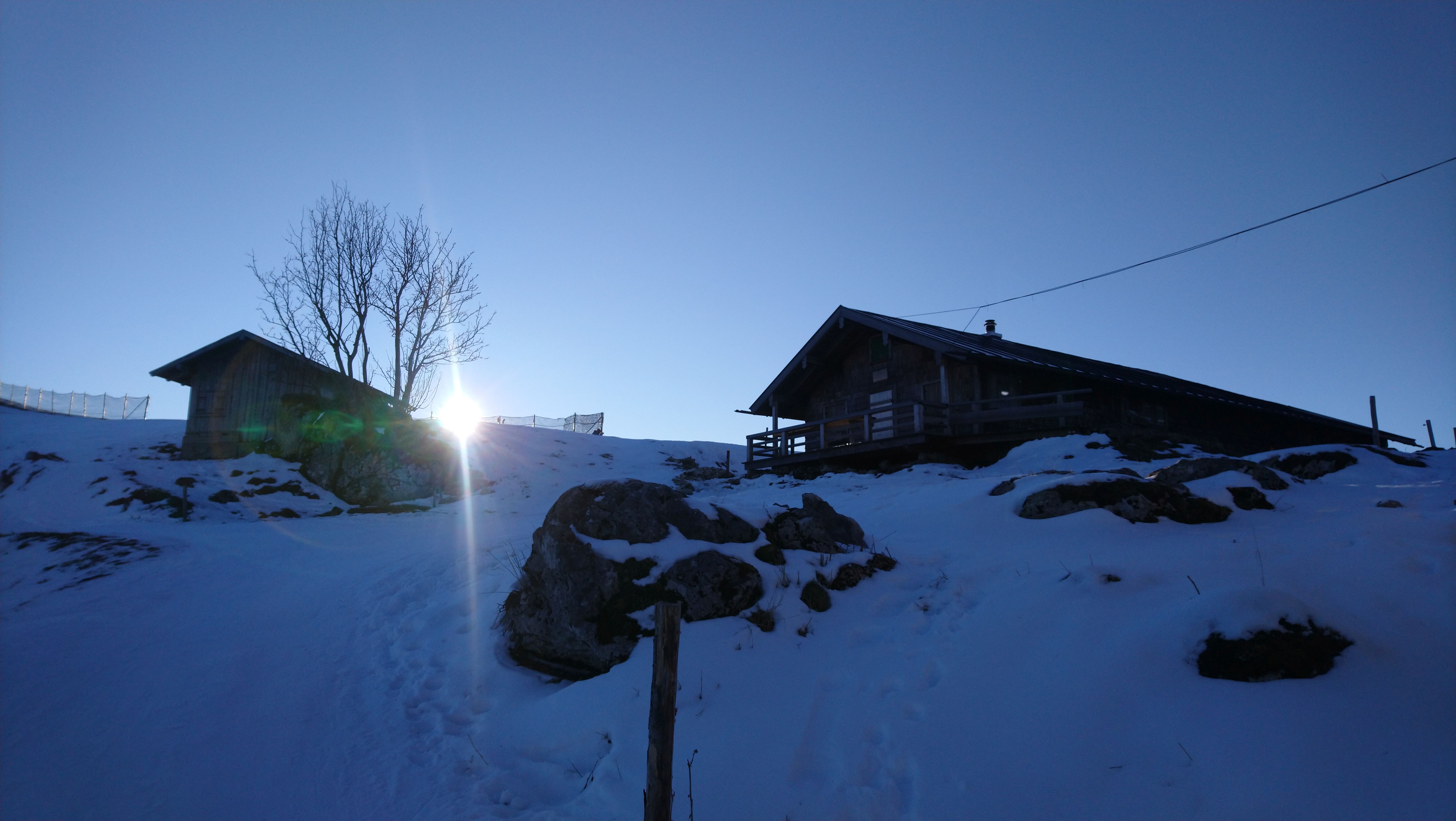 Nach arbeitsreichen Wochenenden wird es Zeit nachzusehen, ob die Berge noch da sind und wie es um die Schneelage bestellt ist. Kurz nach Sonnenaufgang ist der große Parkplatz an der Stümpflingbahn noch geschlossen, aber nur wenig entfernt finde ich einen freien Platz für den Discoflitzer und freue mich: um mich herum ziehen so einige Tourengeher mit Ski und Stöcken los in Richtung Skigebiet.