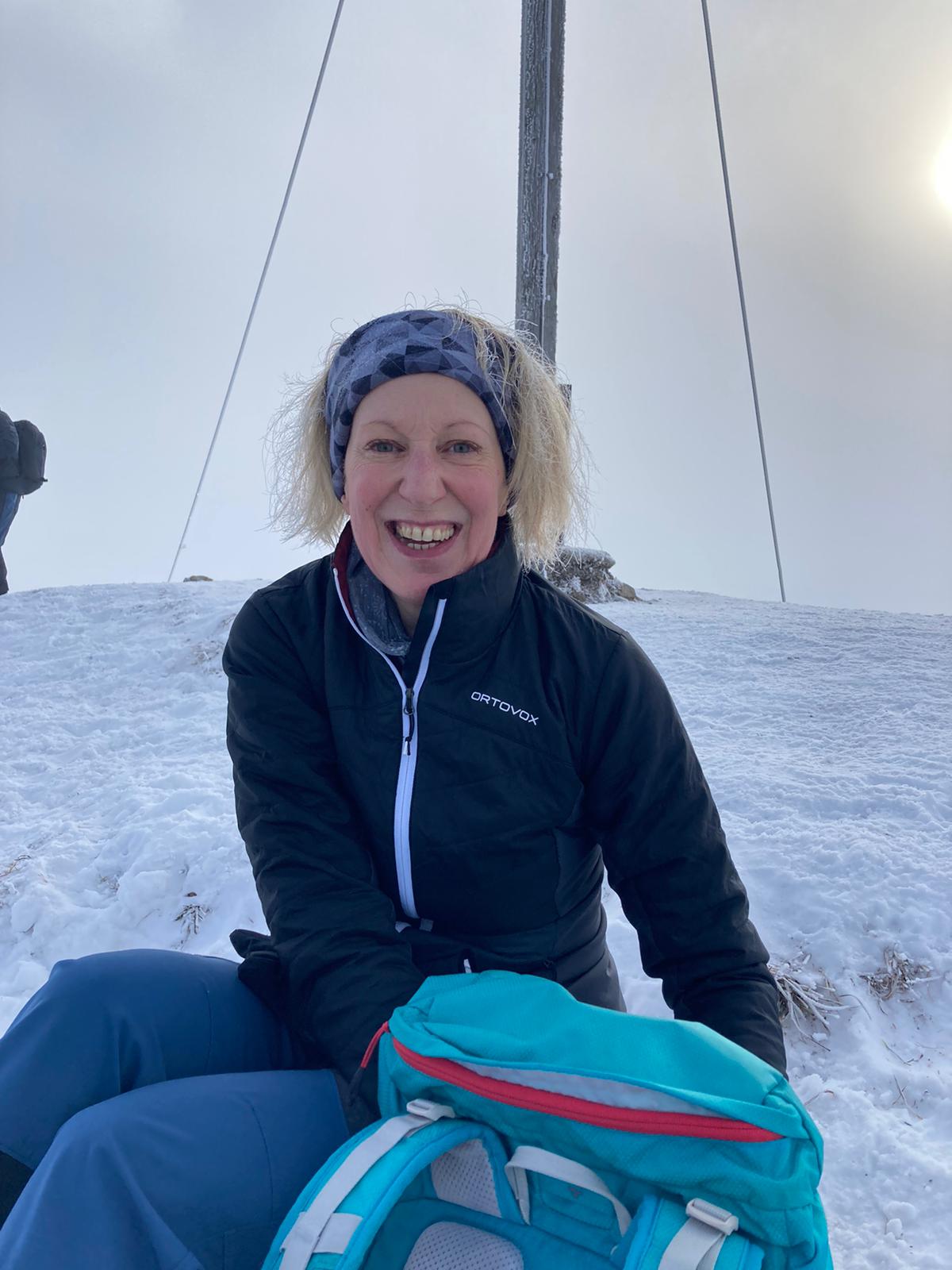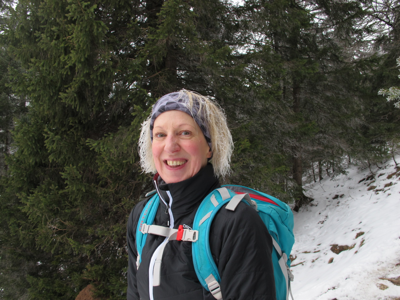 The view into the Alps might be worth a look, but not today. Instead, we listen to the sound of snow crunching under our feet.