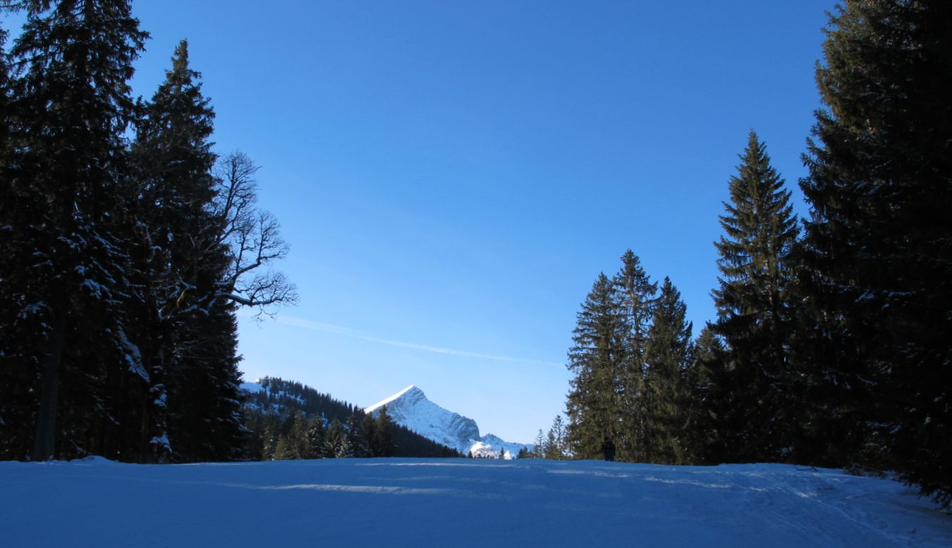 I start to shift my skis uphill, surrounded by other sporty outdoor fans. Most of the Garmisch Classic slopes are half-heartedly prepared: If dreams come true and Covid-barriers may be withdrawn, the entire ski region could step into action the very next day. As for today, it is well-organized for touring skis and snow shoe hikers, supported by parking attendants, toilets and almost all slopes available. Less hostility and more useful options, compared to other narrow-minded villages.