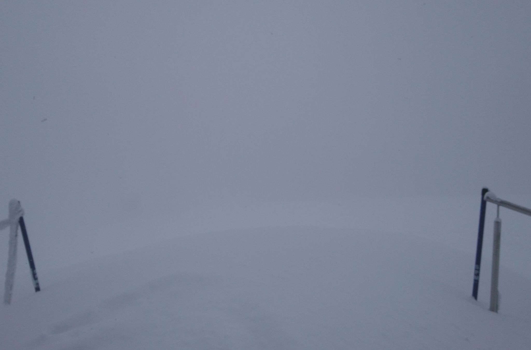 Today’s conditions come along with the perfect ski buddy and the trail from Grafenherberg to Sudelfeldkopf. The weather enfolds sort of charming in the lower part. It gets more interesting in the white-out, when leaving the trees behind. By the time we reach the Sudelfeldkopf, the panorama is a monochrome one.
