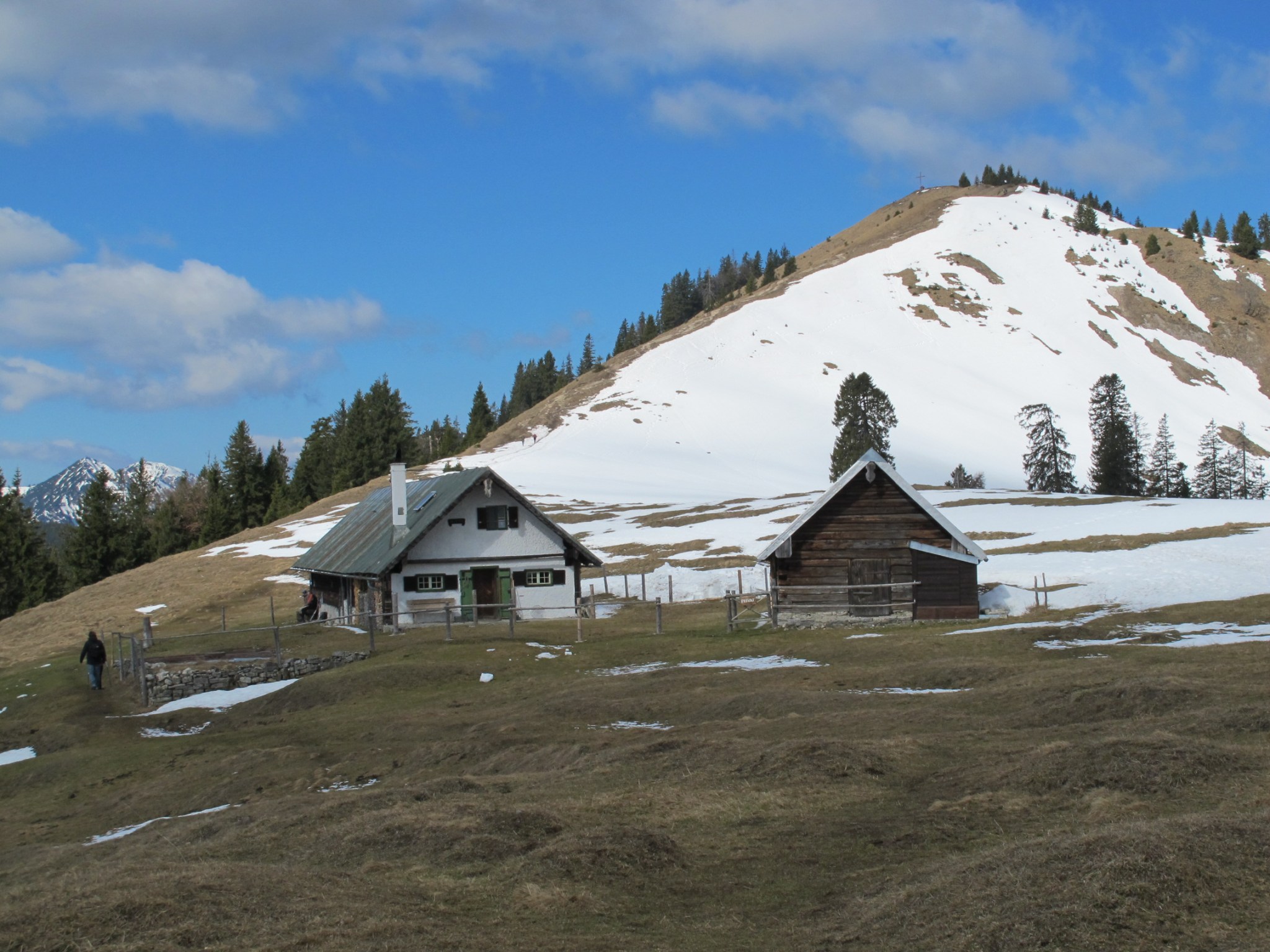 In former times, we have been skiing passionately and prefer ski lifts for uphill motion. Nowadays, the choice is: walk it or leave it. Consequently, we start our 3-hours-uphill-promenade at Jachenau.