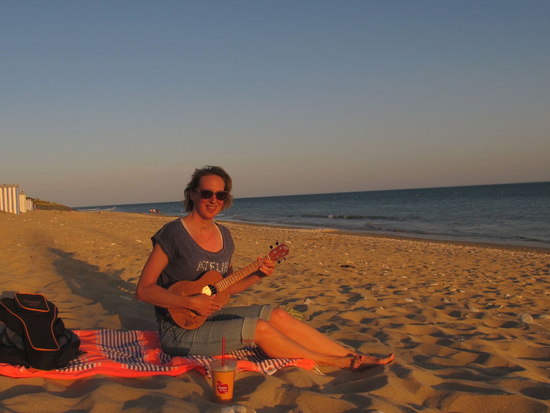 Back in La Couarde sur Mer, it is time to constitute a new tradition: Live concerts at the beach, fighting the sun with my ukulele and my voice until it gives up and drops under the horizon. And, guess what?! I even got fans 🙂