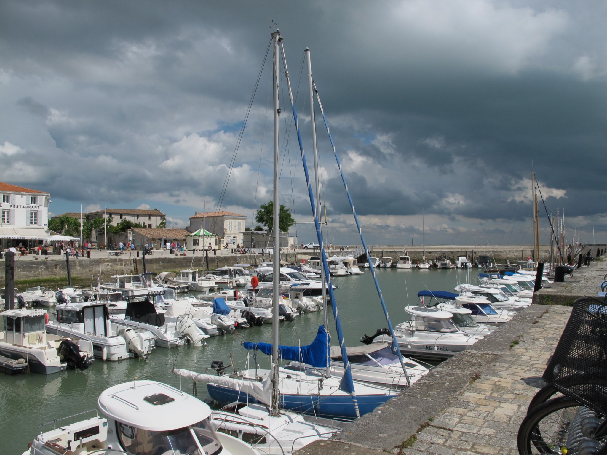 It turns out that La Flotte is the most charming of all island villages. A cute little harbour, a handful of bars and restaurants and one or two tiny alleys with all sorts of shops. Today, it is topped by a dramatic sky.