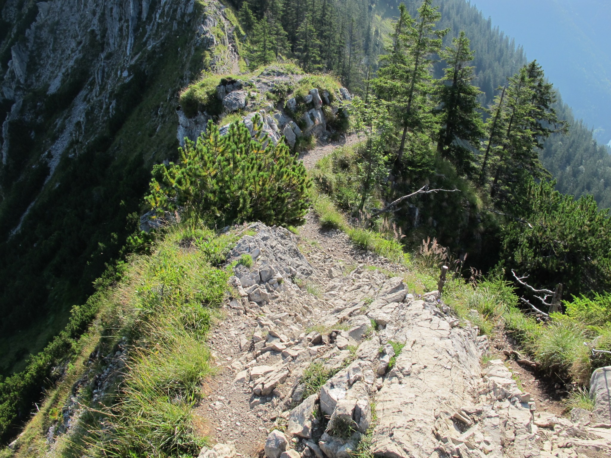 Only yesterday, it seemed reasonable to add the Bodenschneid to the Brecherspitz-tour, facing the fact that 500-something-meters altitude difference are way below my possibilities. Now I wonder when and in which state I will reach the Obere Firstalm, aiming for shadow even more than for a light meal.