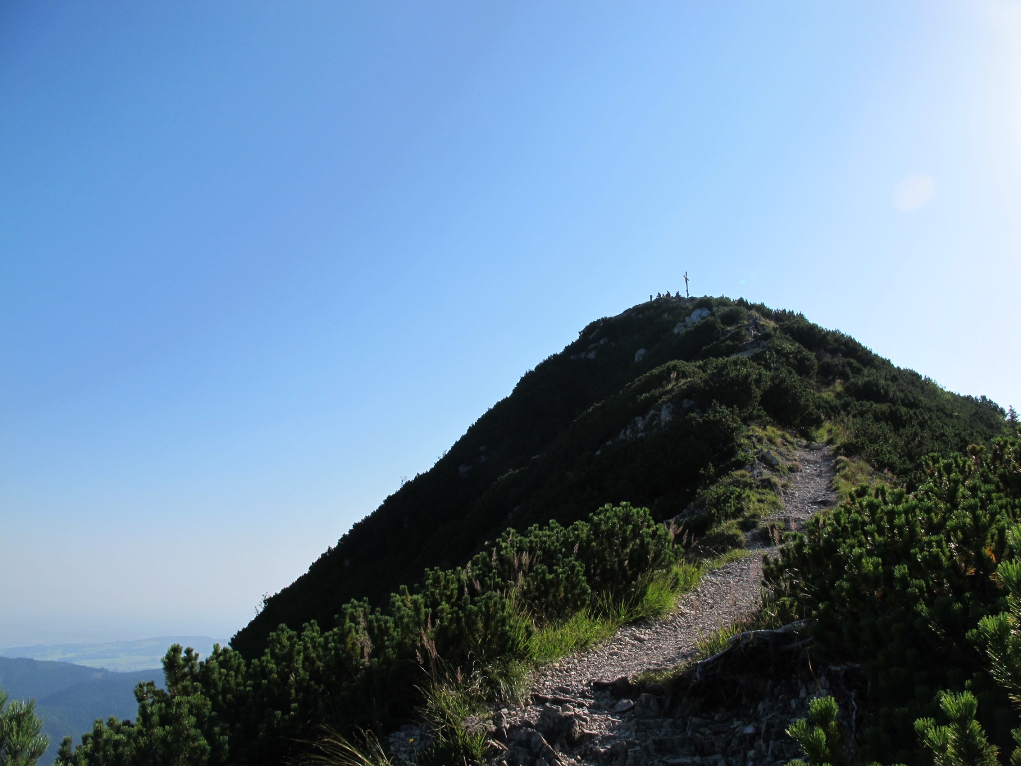 Despite the 28° C reached by now, I head up for the Bodenschneid, sole peak with view on all 3 lakes around: Tegernsee, Schliersee, Spitzingsee.