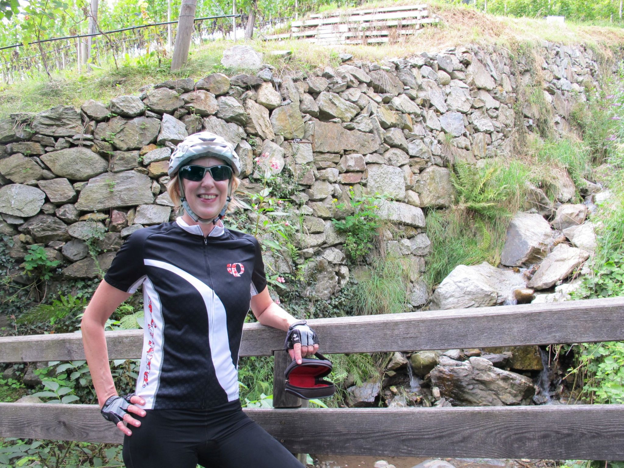 We come from steep via very steep to incredibly steep gradient. Sweating and swearing, I push my bike uphill. I learn the hard way that a 19% slope is beyond cycling… My smile may have become a bit forced along the way, but at least I look sporty as hell.