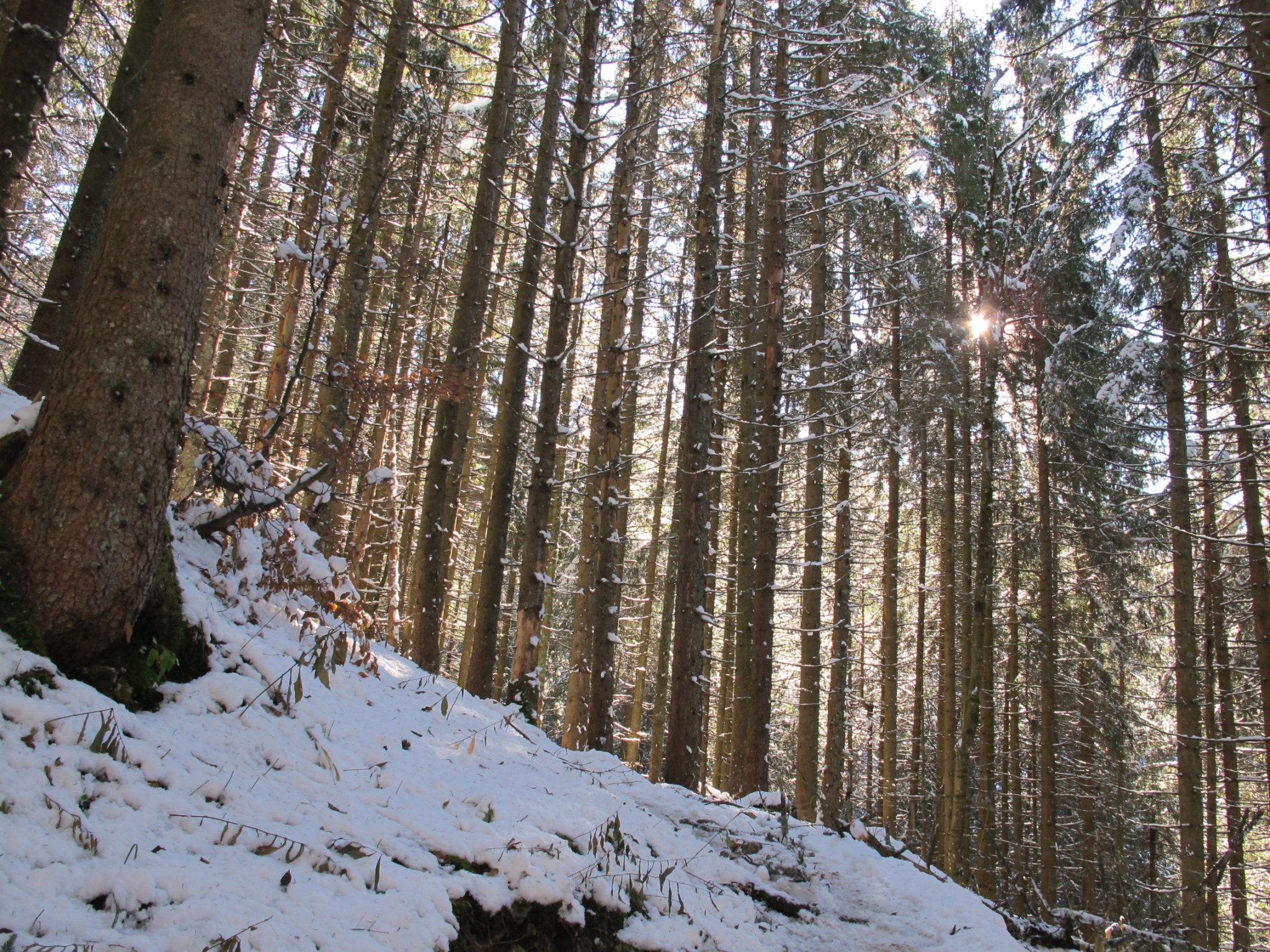 I share a table in the sun with a gentle guy from Slovakia and he shares his knowledge about the right way to the Jägerkamp (turns out that I have been wrong all along). For the time being, I have no regrets: 2,5 hours in beautiful surrounding, with rays of sun and sparkling white snow – peak or no peak, I have a wonderful time with probably the last hike of the year.