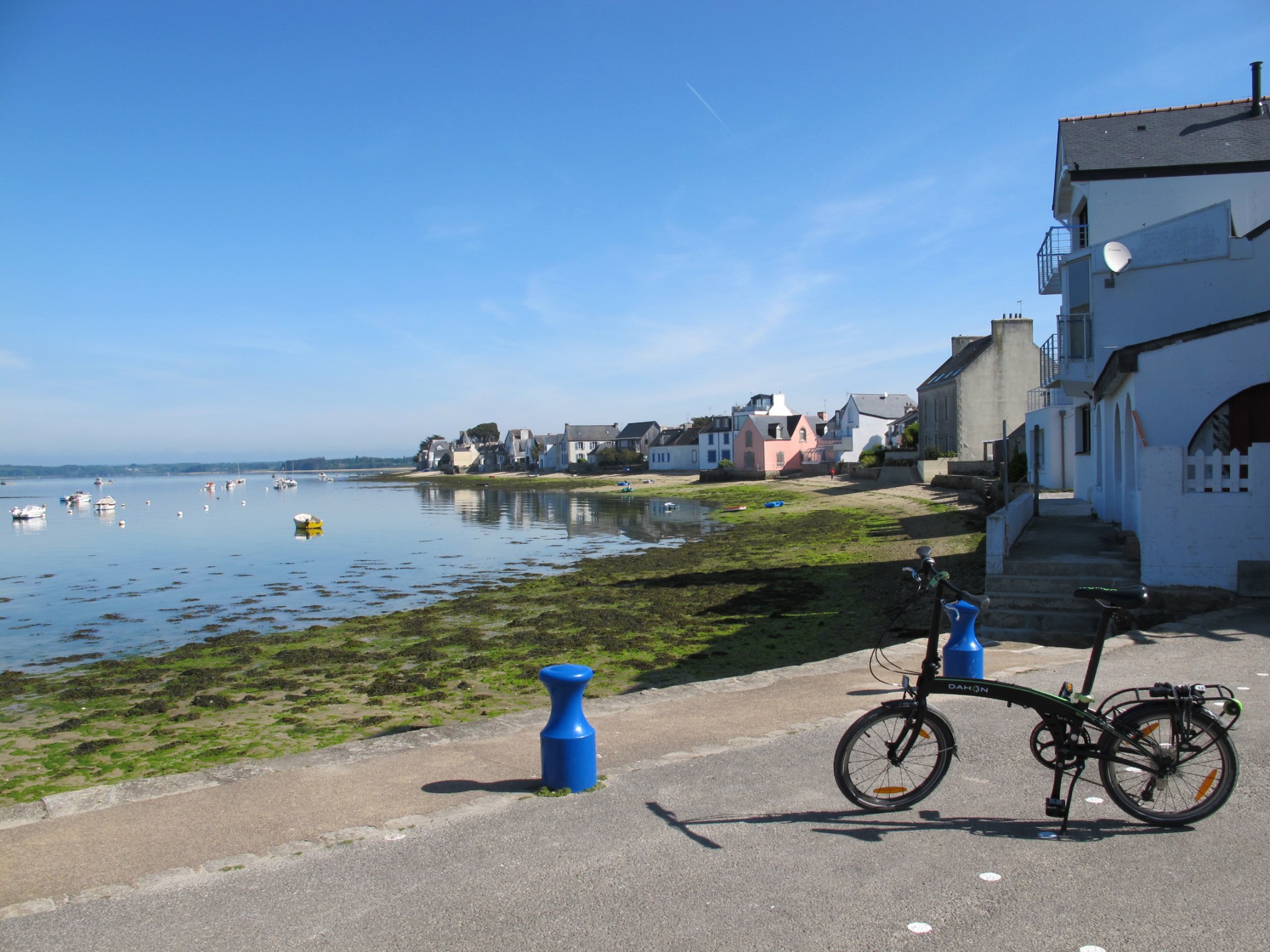 Next attempt of a bike tour is to the other side: From Île-Tudy downtown (another micro-port) a shuttle ferry is supposed to bring men and bikes to Loctudy. However, due to Covid / illness among the mechanics and lack of required parts or tools, this is out of service. Meanwhile, I totally get it: the Universe tells me to calm down and relax.