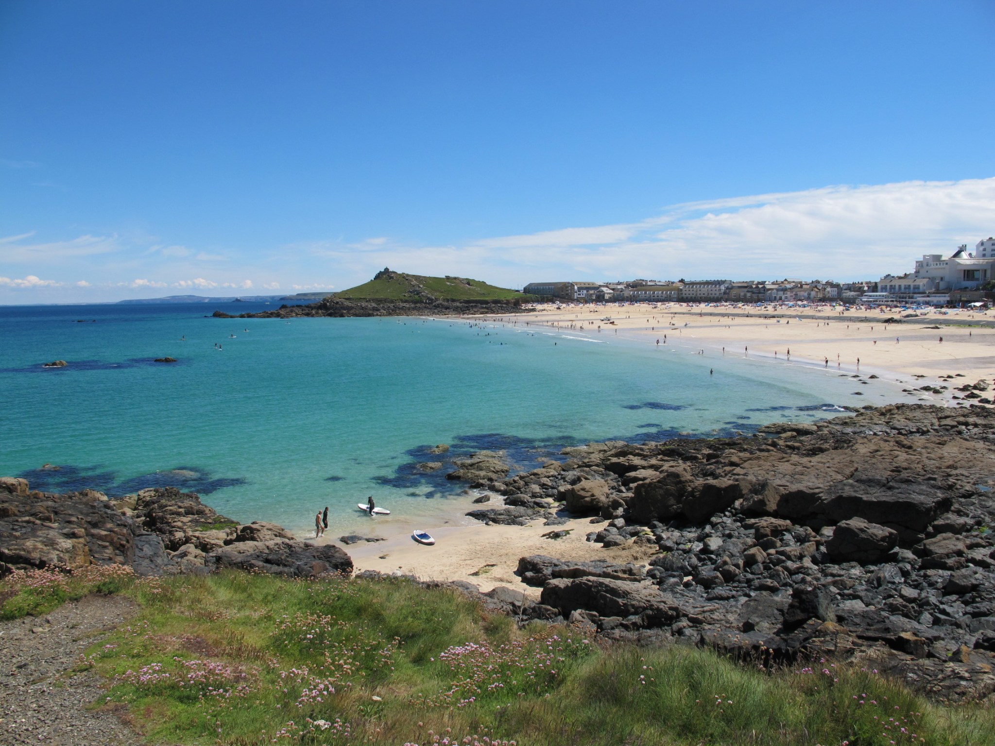 The best way to approach St. Ives is via the coastal path. Unless you dislike grey stones, green plants or blue sea. Wonderful weather might be even more of a cliché (never seen one of those “Rosamunde Pilcher TV movies” on German TV, but might look just like this), still, with Andy joining, we decide to endure it all.