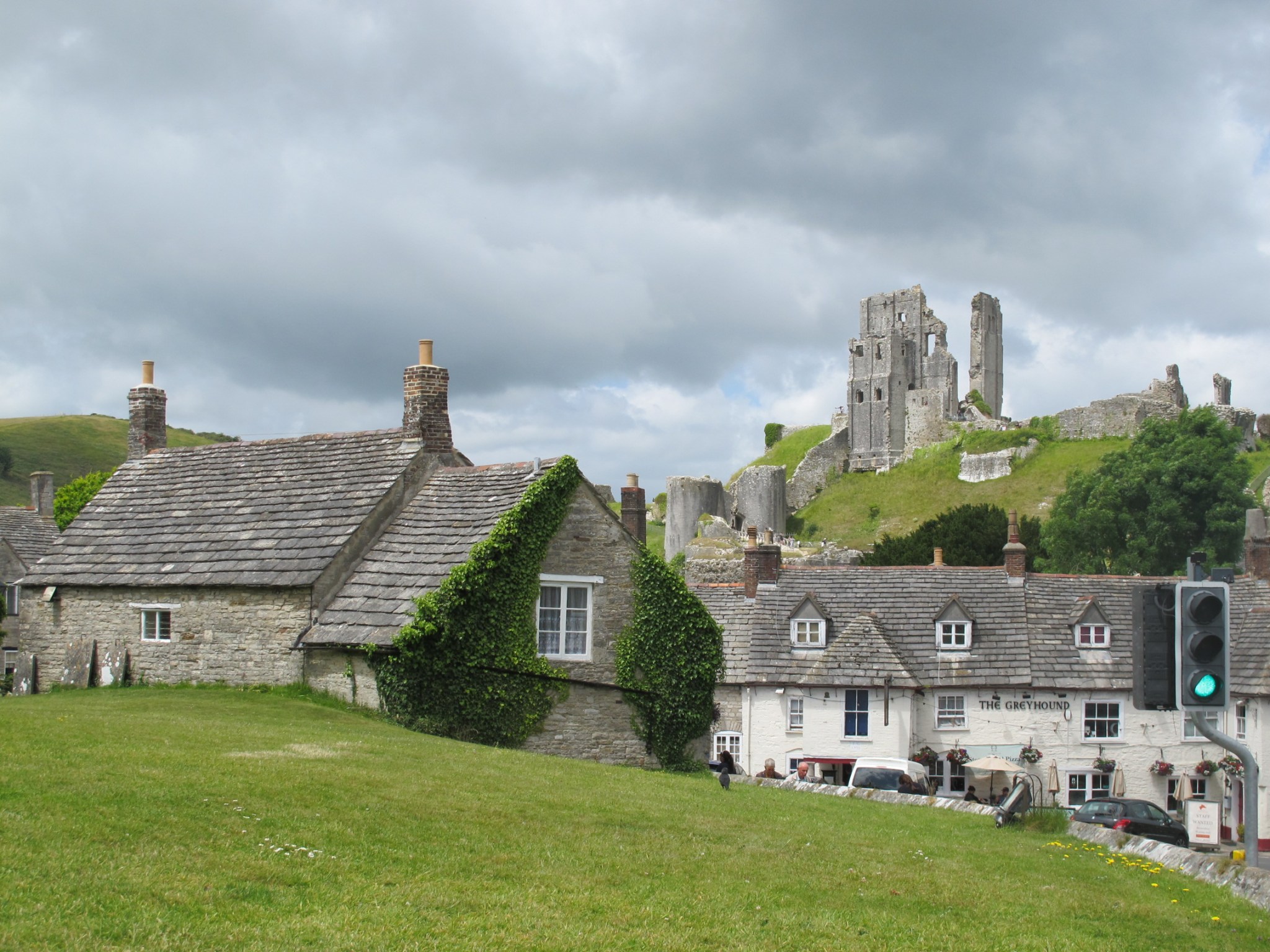 Wir haben uns im Vorfeld natürlich informiert und gelernt, dass Corfe Castle die Mutter aller idyllischen Ruinen ist. Völlig überrascht sind wir von dem charmanten alten Ort, der die eigentliche Burg umgibt.