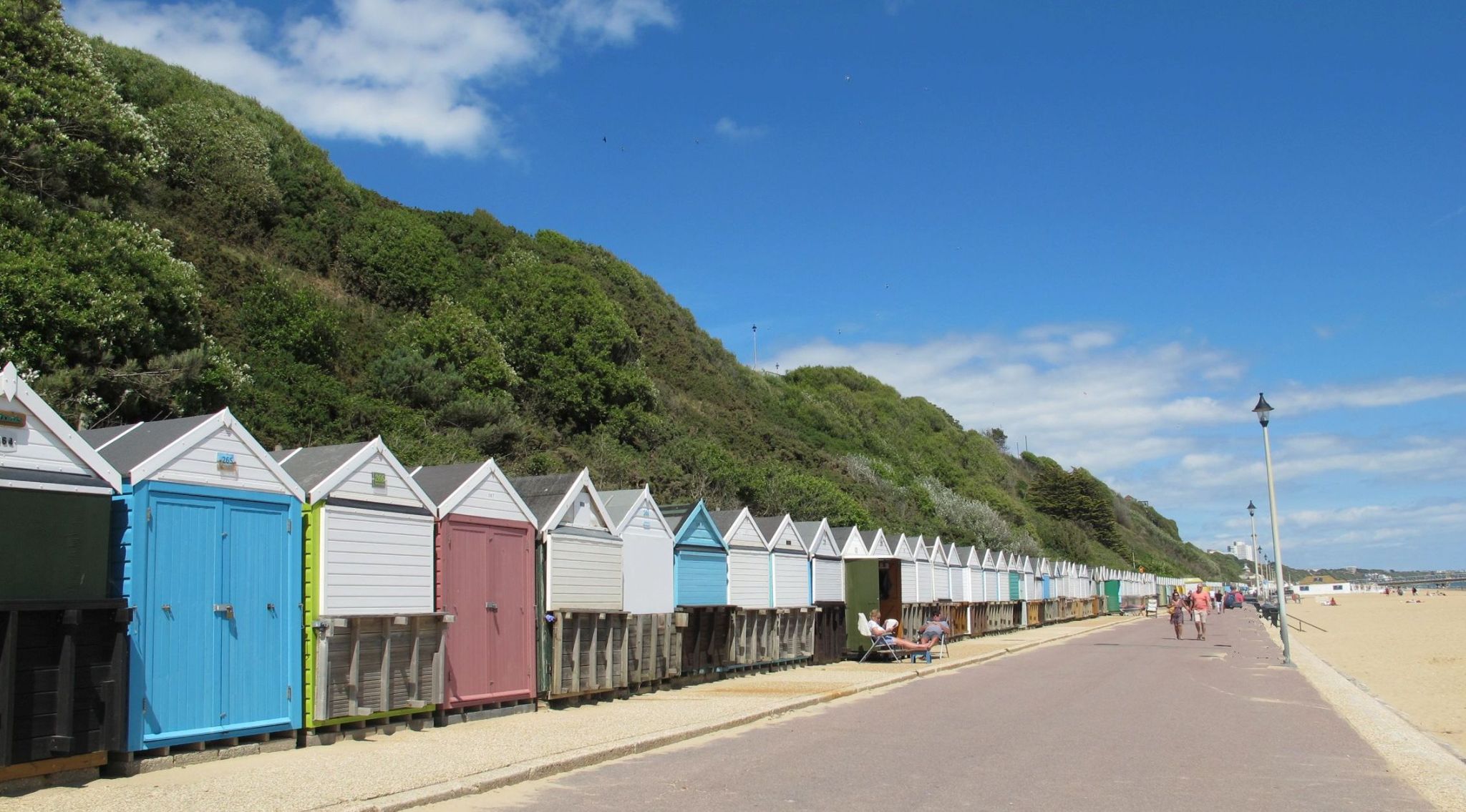 Bournemouth ist überraschend einladend. Der Strand ist kilometerlang und feinsandig, das Meer klar und sauber, dazu der Himmel strahlend blau. Entlang der Promenade reihen sich bunte Strandhütten auf, jede einzelne von ihren Mietern liebevoll eingerichtet.