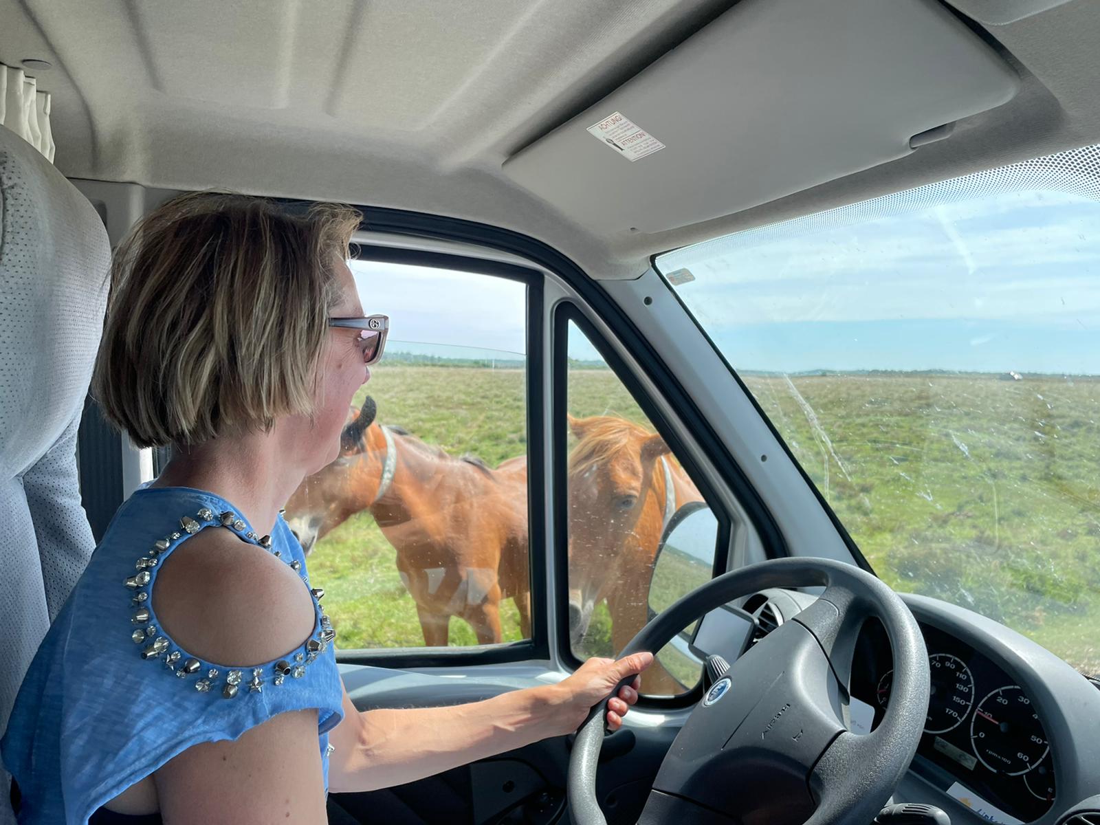 Die Wege durch den Wald sind traumhaft schön. Unspektakulär, aber irgendwie zauberhaft. Niemand wäre ernsthaft überrascht, wenn kleine Elfen in den Sonnenstrahlen herumschweben. Aufregender sind die größeren Tiere: Die Ponys sind gar nicht mal so klein, vor allem aber sind sie stur und haben von Linksverkehr keine Ahnung.
