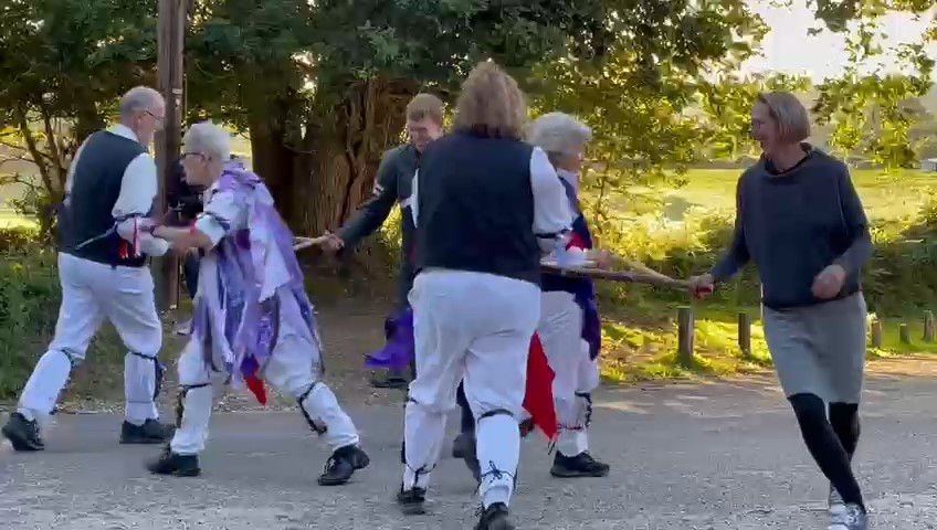 The Red Shoot Pub just in front of our campsite offers an impressive choice of gluten-free food and a group of Morris dancers. It is far from being acrobatic, yet everybody has fun. When they ask for guests to join, I consider: this is something I will probably never see or do again – so yes, here I am!
