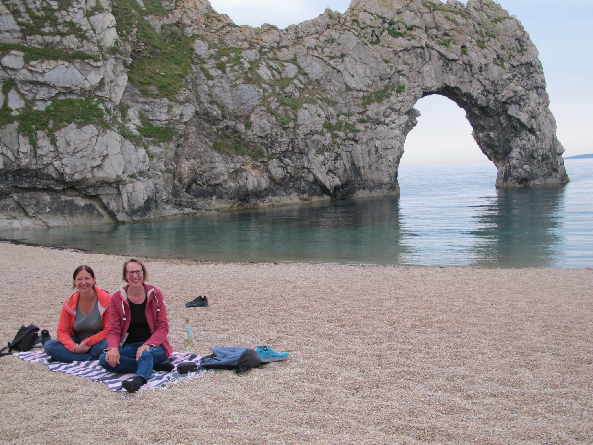 Dieses Dinner auf der Terrasse mit Blick gen Bucht und milden Temperaturen wäre perfekt als Abschiedsabend. So kurzfristig konnten jedoch nur unsere vorletzte Nacht am Durdle Door sichern – morgen Vormittag, wenn all die lärmenden Gruppen und Clans anreisen werden wir uns darüber freuen. Jetzt ist aber erst mal Abend mit Wein, Essen und der wunderbaren Küste von Dorset angesagt.