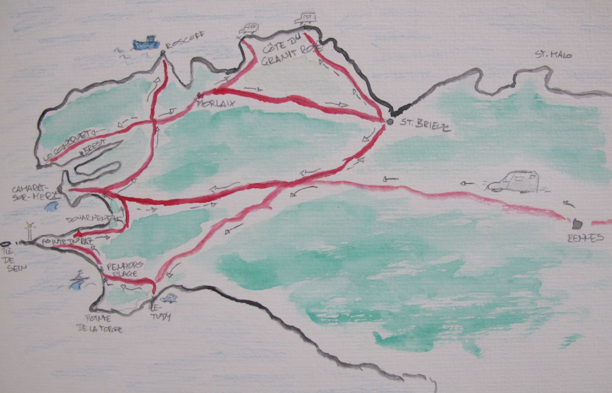 Die Gegend um Camaret sur Mer zog mich – dank der Wellen, den Surfern, der Küstenlandschaft – am stärksten in ihren Bann. Trotz der meist unterschätzten Größe der Bretagne ist man in rd. 3h Autofahrt eigentlich überall, das verführt gelegentlich zu Kreuz-und-Quer-Routen.