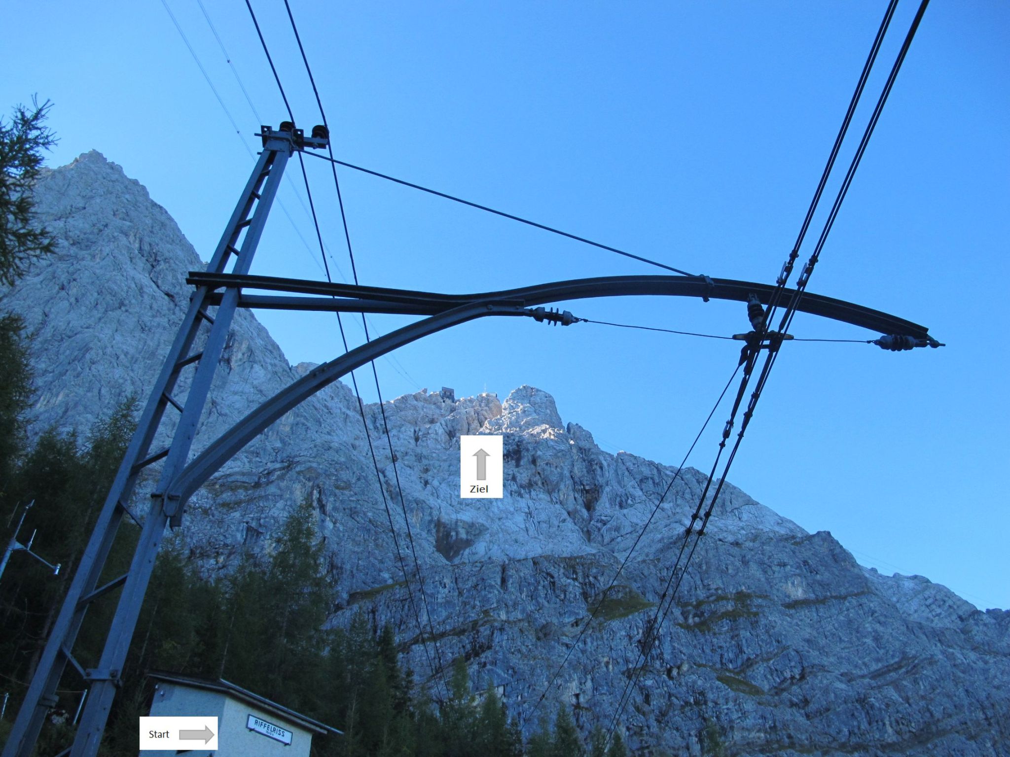 When passing through the pillar of the Tiroler Zugspitzbahn, I wonder: will we ever reach the Wiener Neustädter Hütte, let alone the summit? What about when I get hungry along the way, what about timing, weather and catching the gondola for the descent??