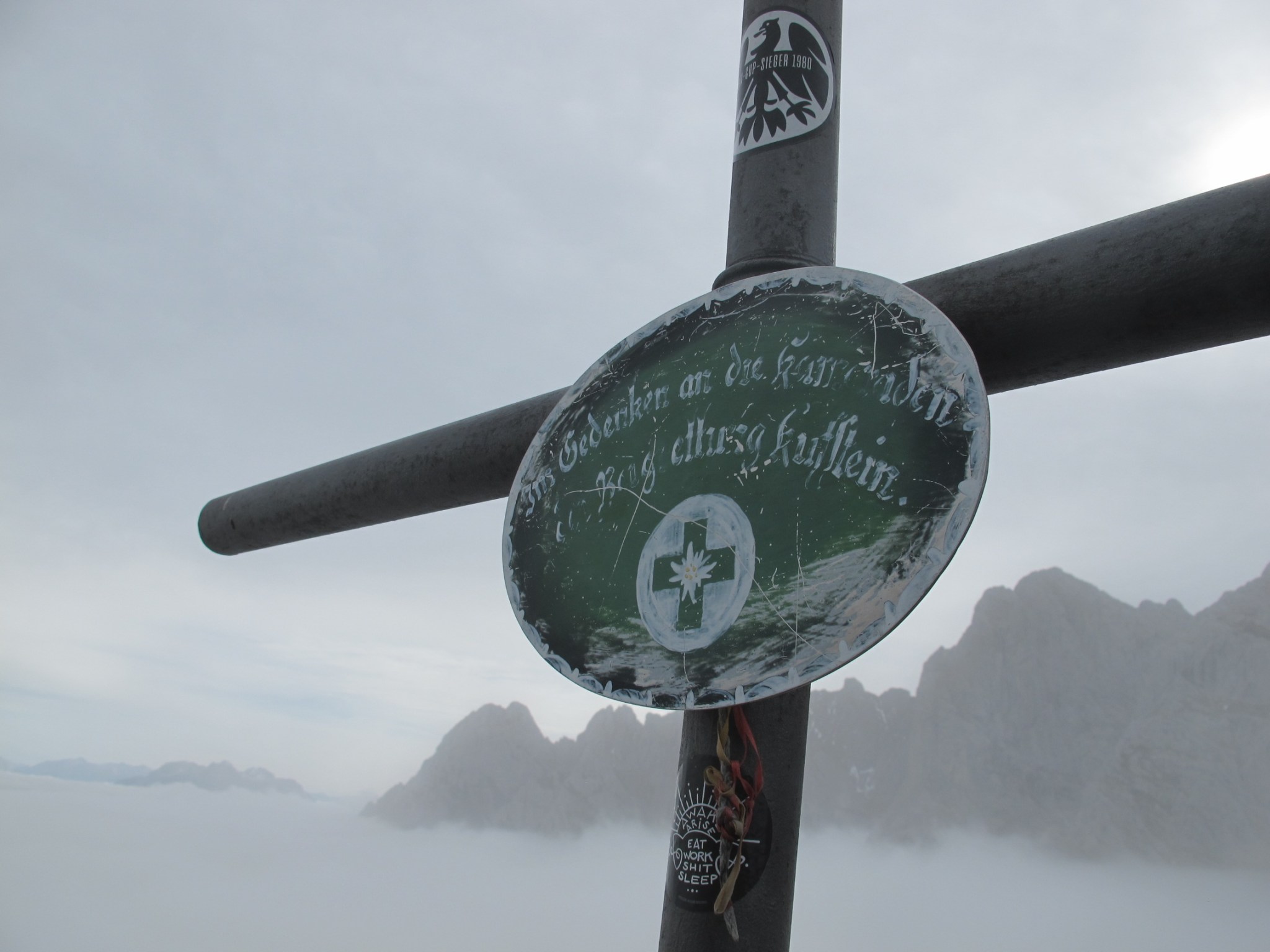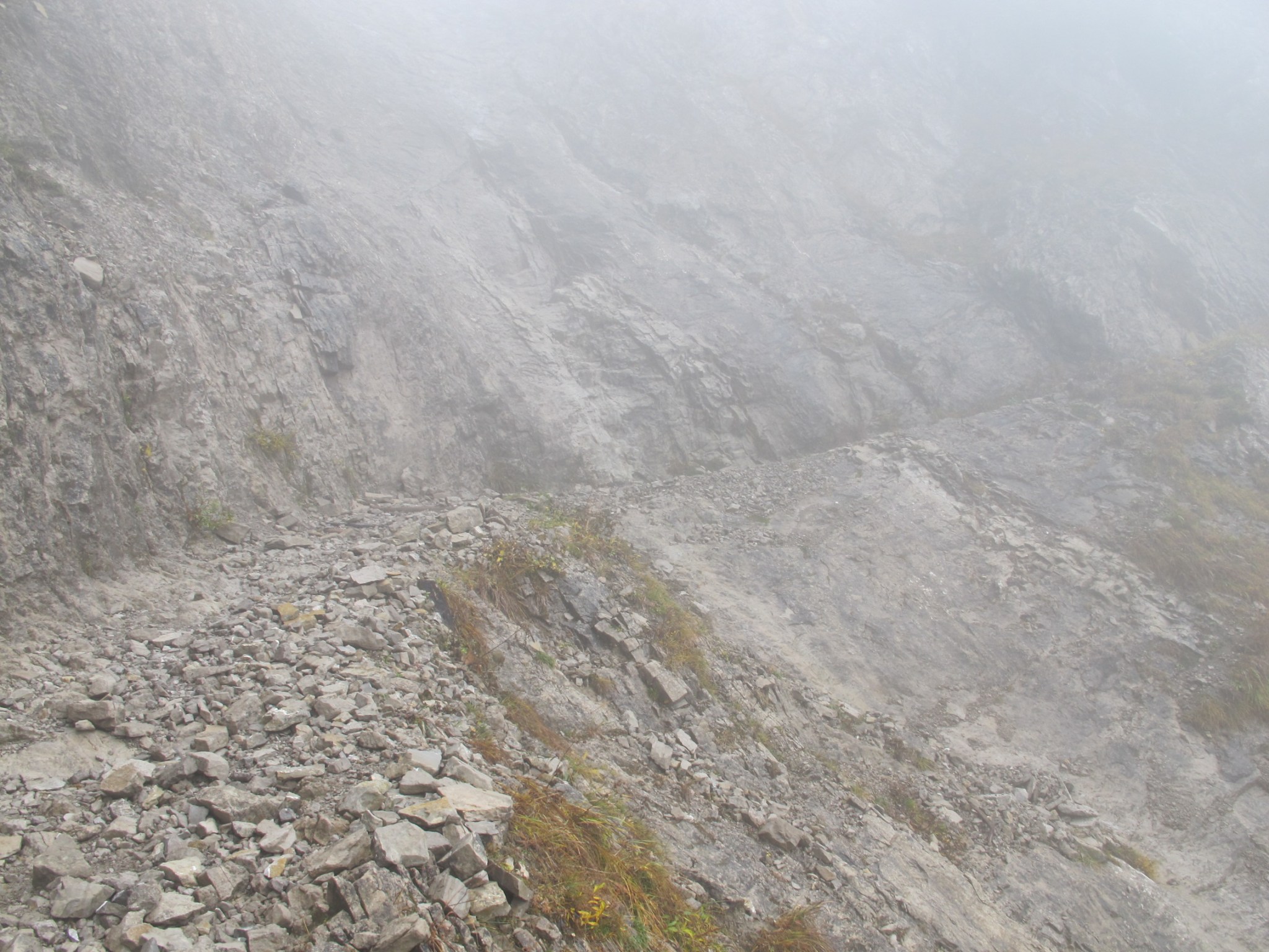 Leaving Hector at the parking, I pack up my steel rope equipment and start through the forest beneath the Stripsenjoch. The guesthouse hides behind thick clouds, approaching end of season by the hour.