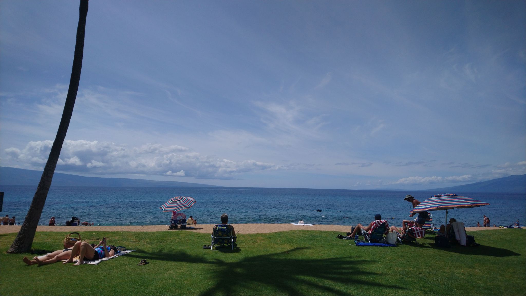 Ich fokussiere das Sightseeing auf die Erkundung der Strände. Maui hat so viele schöne Strände und Buchten, dass ich nur einen Bruchteil besuche, aber Sandkörner zählen ist hier müßig. Mein Inselhopser (Nissan Kicks) trägt mich zum Kahekili Beach: Wäre die Wiese noch perfekter, sie wäre ein Golfplatz. Ich sehe mich sicherheitshalber noch mal um: keine Löcher, keine Fähnchen, das hier ist tatsächlich ein Beach Park. Im Schatten einer Palme sinke ich anmutig auf mein Strandtuch und tauche ein in sanfte Yoga-Bewegungen.