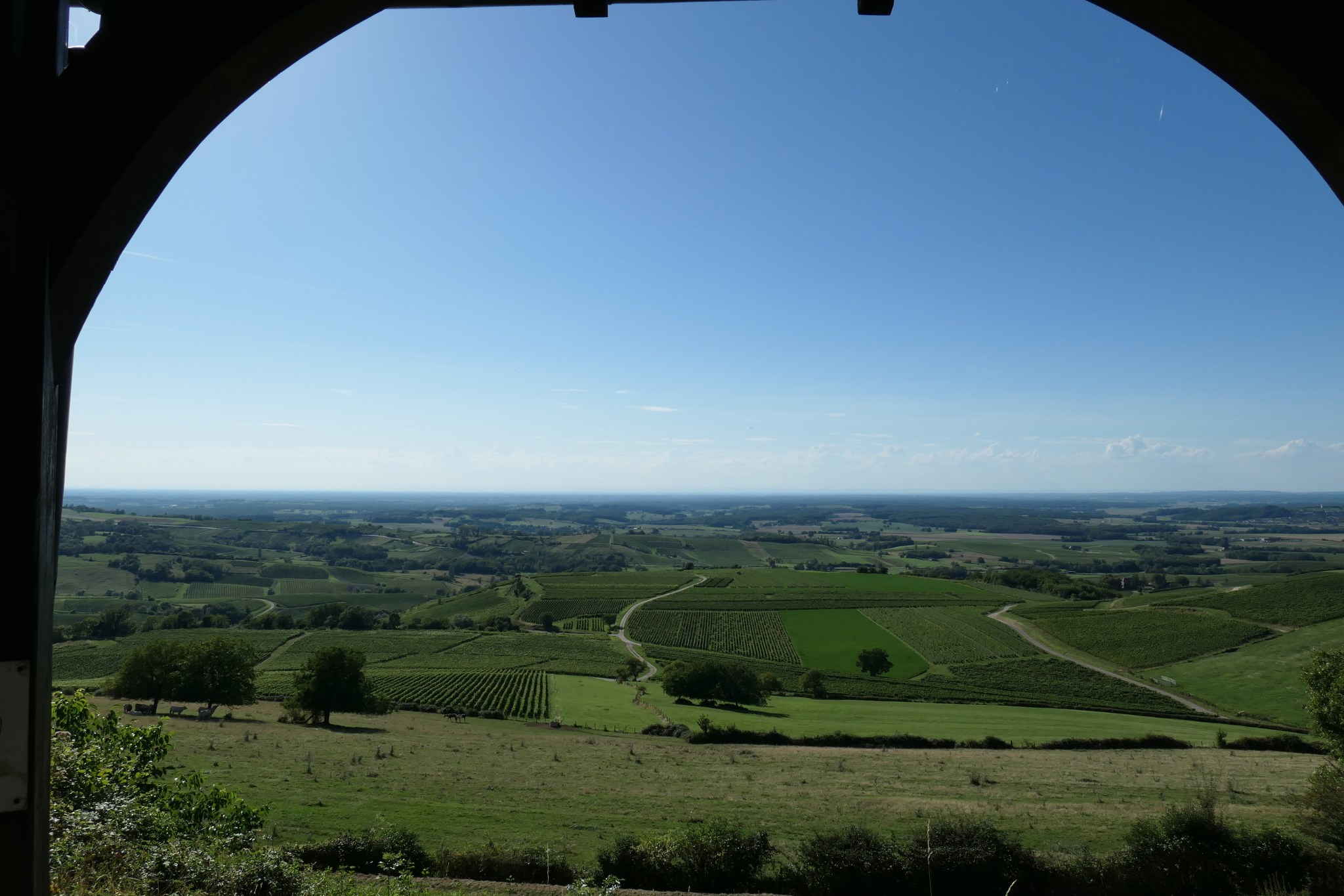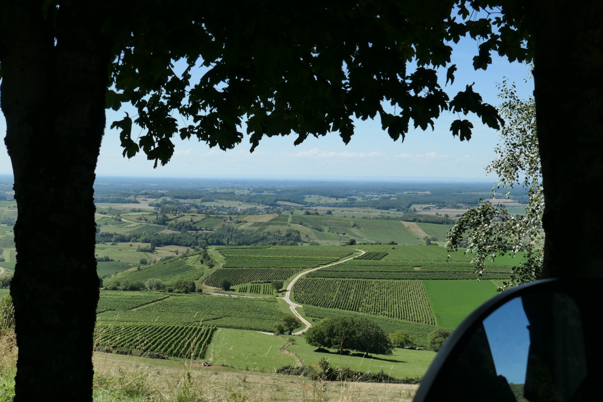 Finally, weekend starts and we head straight South, all up for the exploration of the Jura region. Our first stop is Pupillin, a tiny village with farms, wineyards and a great lookout. Within minutes, Hector parks in front row with a view.
