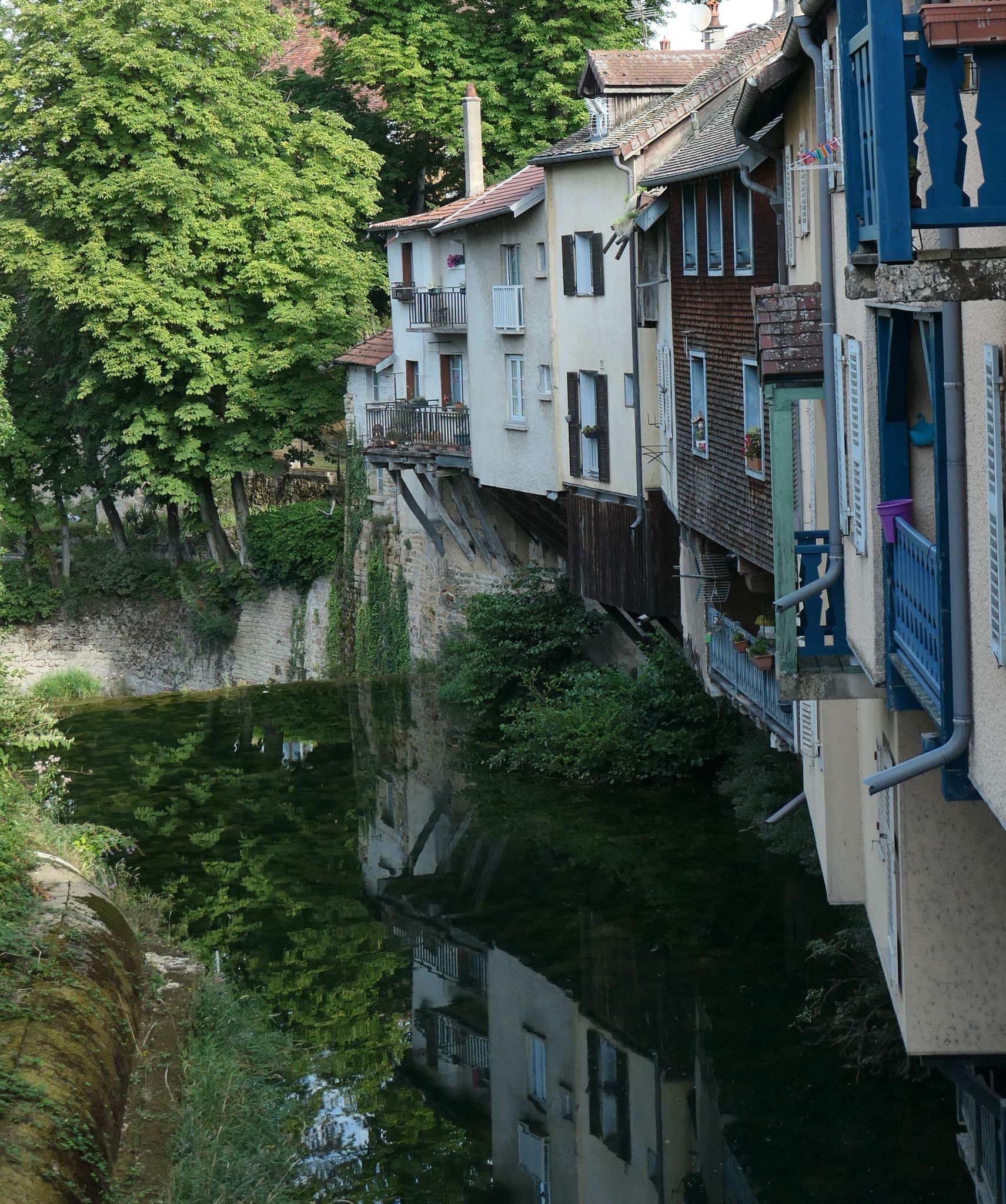 Kurz vor 10 Uhr rollen wir gemütlich nach Arbois und finden problemlos einen Parkplatz an einer der Hauptstraßen. Der Fluss Cuisance fließt dunkel und träge durch den Ort, aber ich halte mich nicht lange auf, schließlich locken die Tipps der Queen of Kulinarik (danke, Ute!).