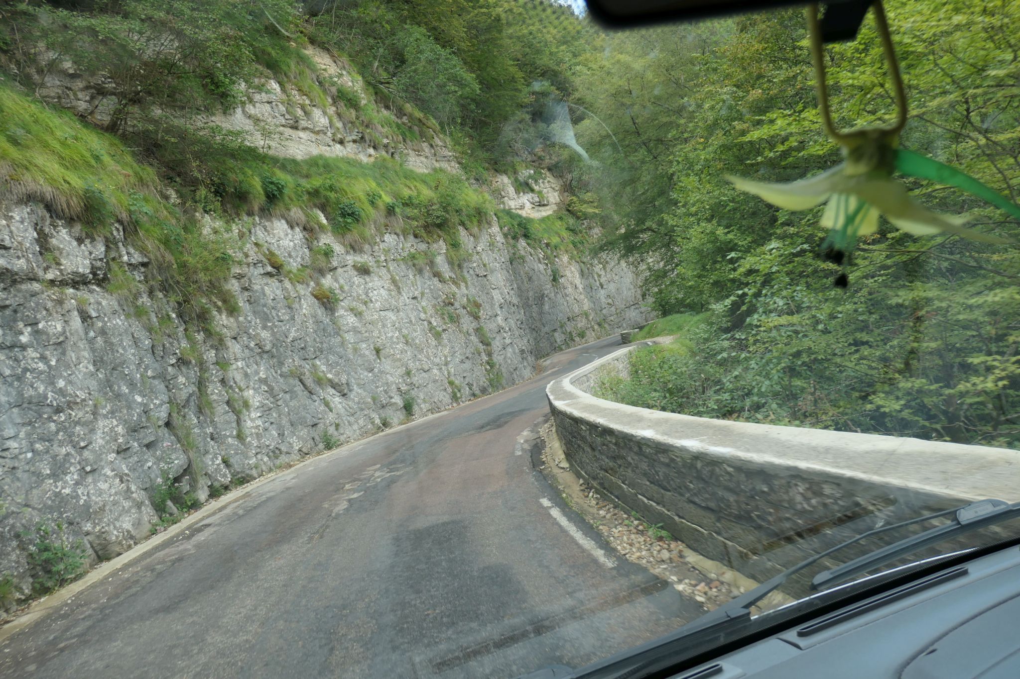 Die Gegend hier besticht durch unzählige Flüsse, Wasserfälle und kleine Seen, Bademöglichkeiten zuhauf. Ausgerechnet neben der Ausnahme, dem Lac de Bonlieu (Baden verboten und auch nicht reizvoll), steht Hector auf dem Camping de l’Abbey. Genauer: auf dem PMR-Platz. Was ich für eine Abkürzung „mit Strom“ hielt, bezeichnet in echt „Personnes de Mobilité reduite“, ich stehe also auf dem Behindertenplatz. Neben dem Aufpreis und dem in absurden 2m Böschungs-Höhe angebrachten Stromanschluss ist der größte Vorteil die Nähe zur Herrentoilette. Drei Meter von der Parzelle zum Urinal, das ganze bei top Akustik, ich bin ein Glückspilz. Der Campingplatz ist ausgebucht und die Platzleitung reagiert auf meinen Wechsel-Wunsch freundlich, aber unnachgiebig (und maximal unerfahren, aber das ist eine andere Geschichte). Kurz gesagt, meine Motivation, den Nachmittag am Campingplatz zu verbringen, ist ebenerdig.