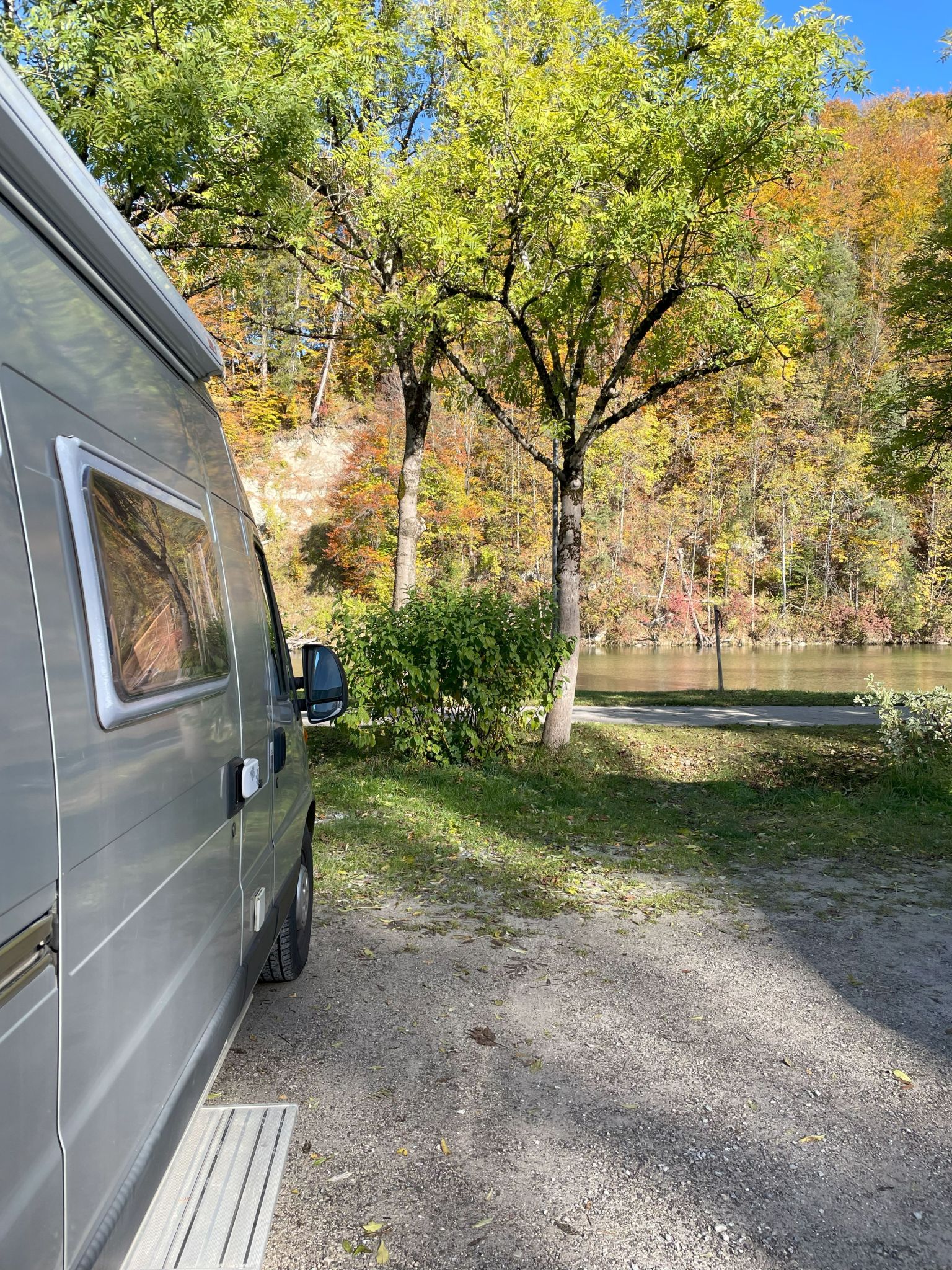 Wir sind uns also einig, den Stellplatz an der Isar in Bad Tölz auszuprobieren. Gerüchten zufolge ist es dort meist voll, aber Ende Oktober kommt außer uns bestimmt niemand auf die Idee, sich dort hinzustellen – oder?