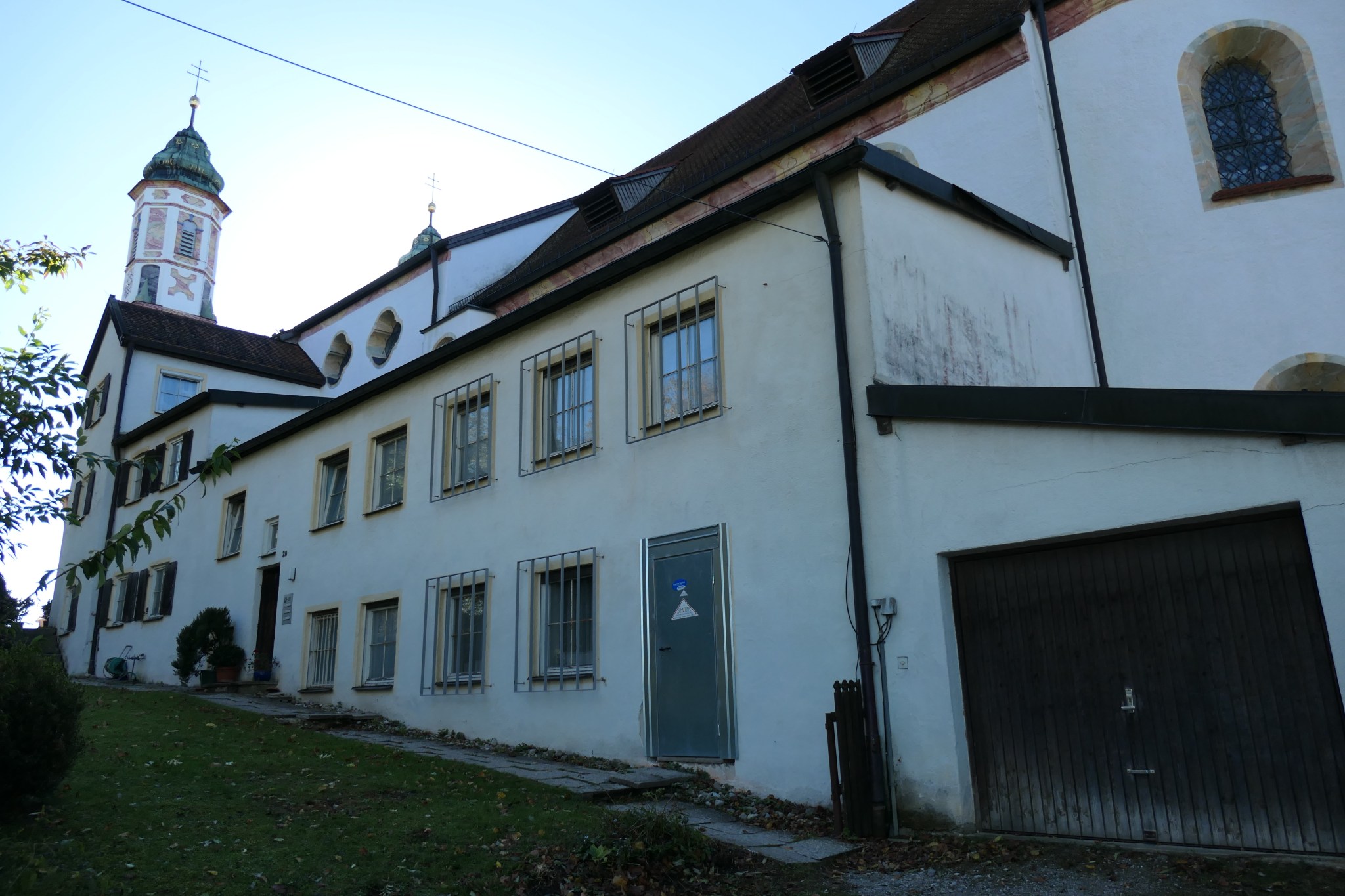 Als ich das Gebäude weiter umrunde, kommt das Schmunzeln zurück. Diese Mauern haben es in sich: zwei ineinander verschachtelte Kirchen, Wohnhaus, Vorrats-/Technikraum und Garage. Das ist geradezu liebenswert-pragmatisch.