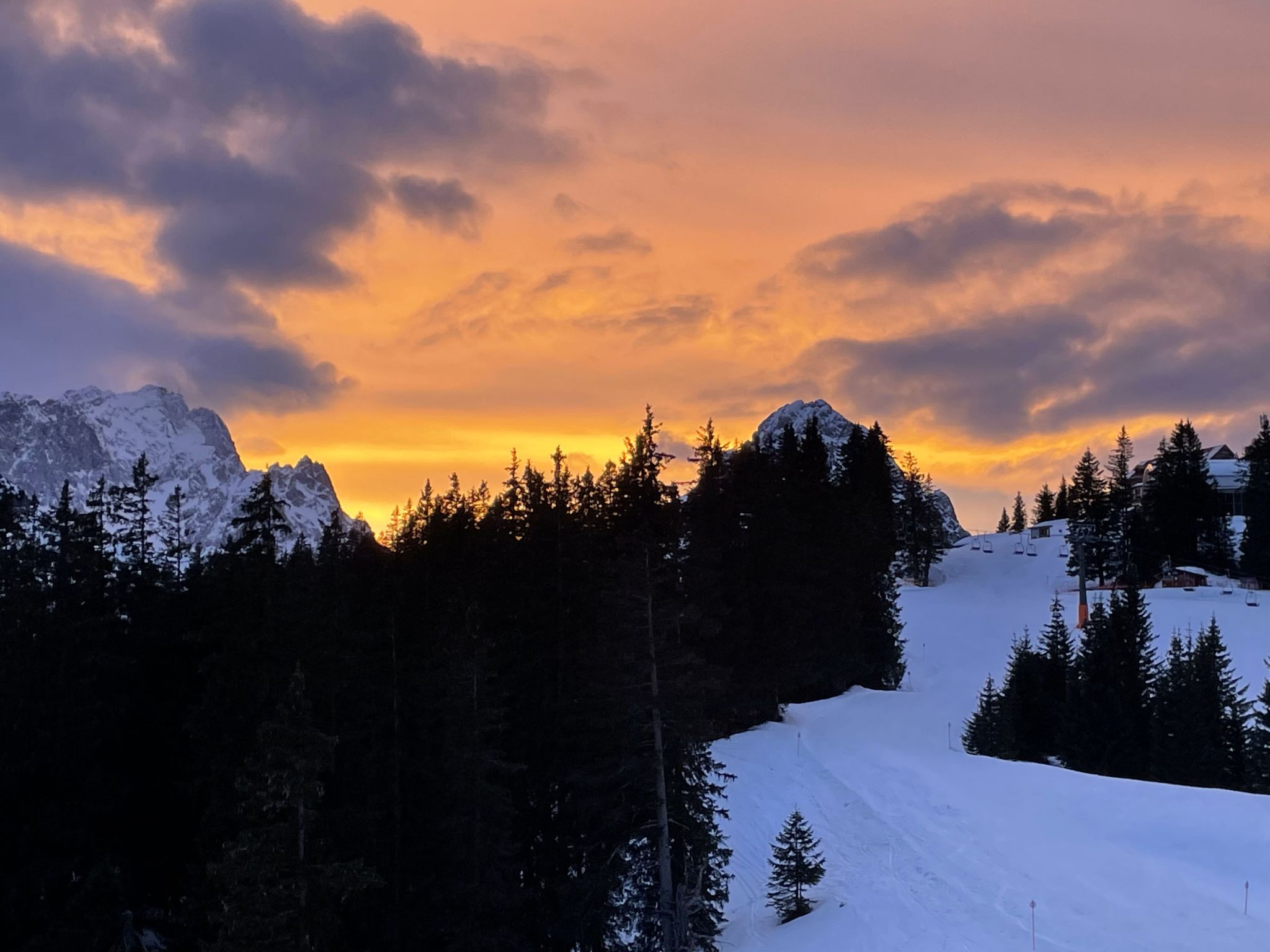 Am nächsten Morgen stehen wir um kurz vor 8 schon in der Bindung. So schön es ist, das Skigebiet ganz für uns zu haben, diesmal ist das Ziel der Bahnhof: Um 8:24h entern wir den Zug zur Zugspitze.