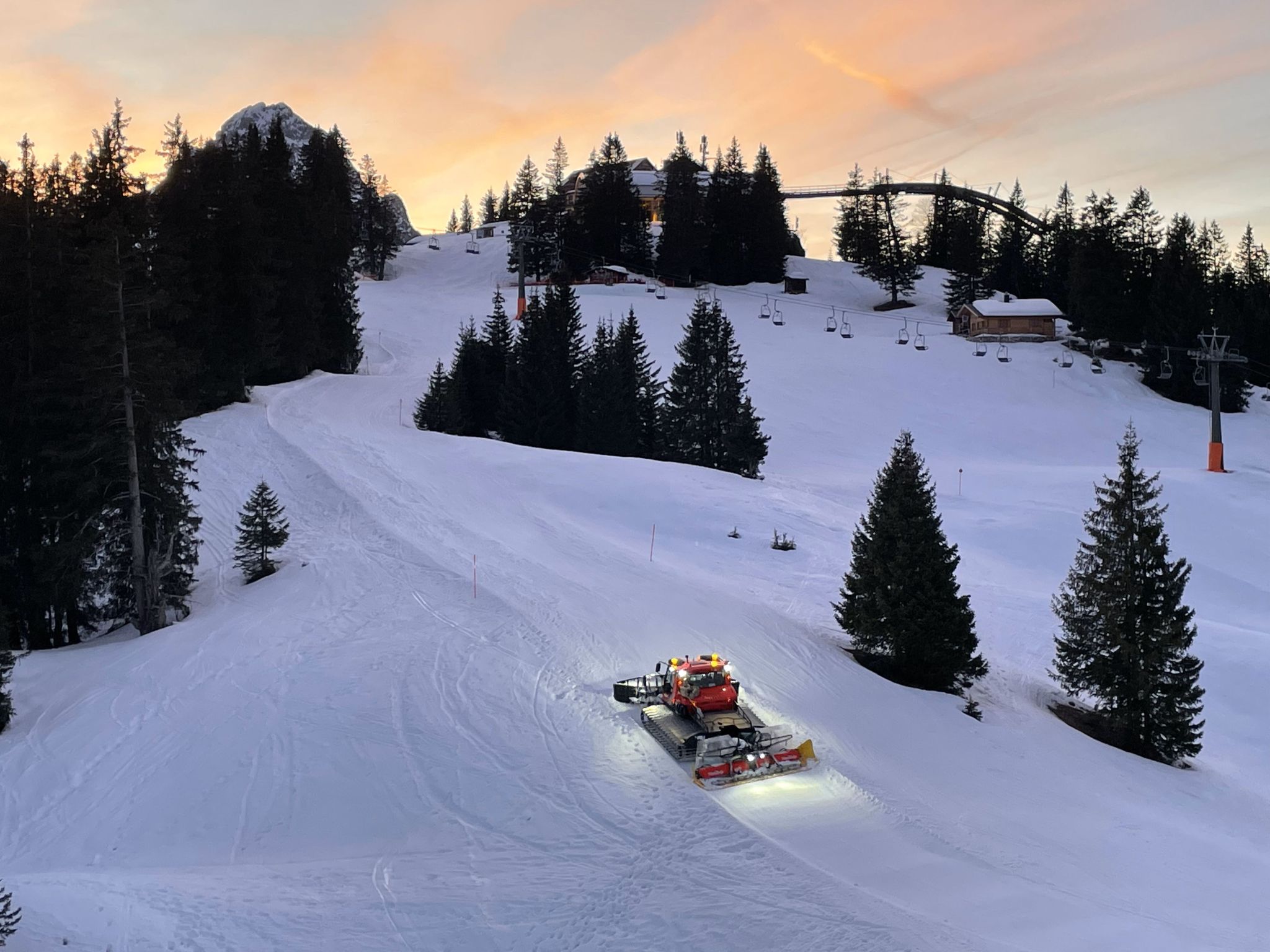 Am Abend rufen wir der Pistenraupe zu, dass sie es für morgen ruhig angehen lassen kann, wir haben nämlich andere Pläne.