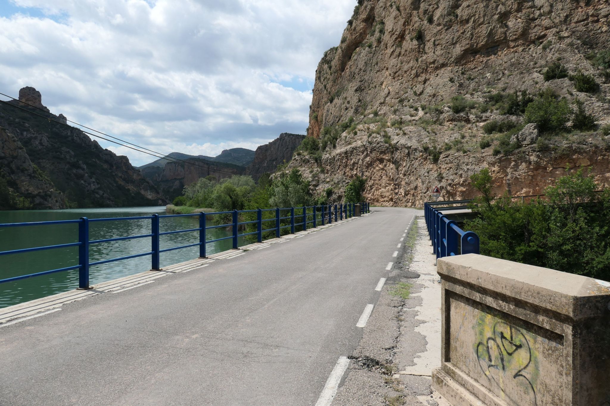 Schließlich finde ich den gesuchten Stellplatz in Camarasa, der mit mindestens 30 Mobilen gut besucht ist. Hector rollt in die letzte Lücke, und ich gehe in Richtung Dorf „downtown“, auf der Suche nach Mittagessen. Der Ort selbst hat nichts Bemerkenswertes, ich mache nicht mal ein Foto. Besser, ich erkunde die Wege entlang des Flusses.