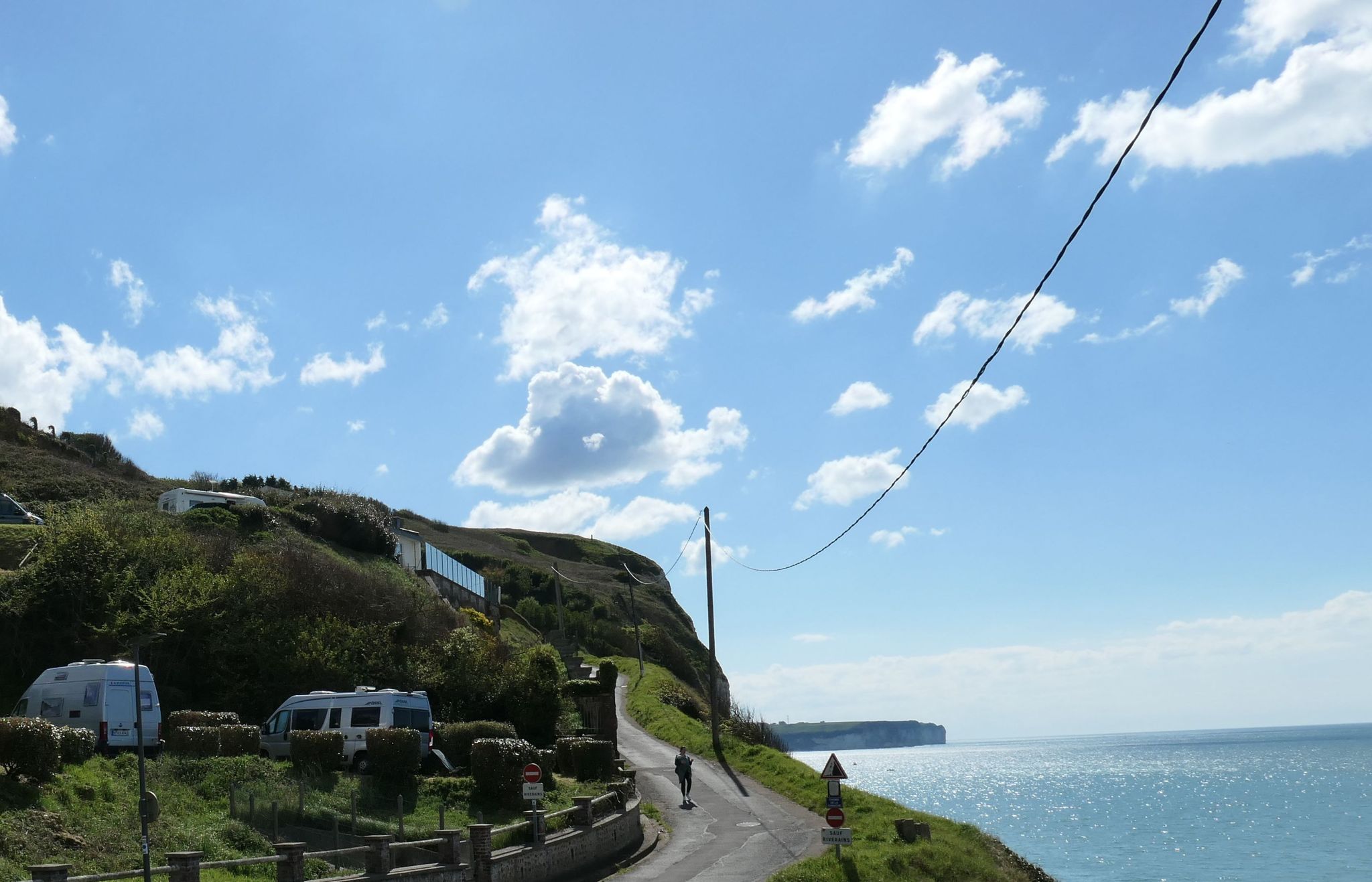 Eventually, I reach the sea and soak in the views offered at Camping de Reneville, Fécamp. Spreckled along a serpentine road, each pitch comes with the lookout from the harbour to the cliffs, and from the beach to the off-shore wind-park.
