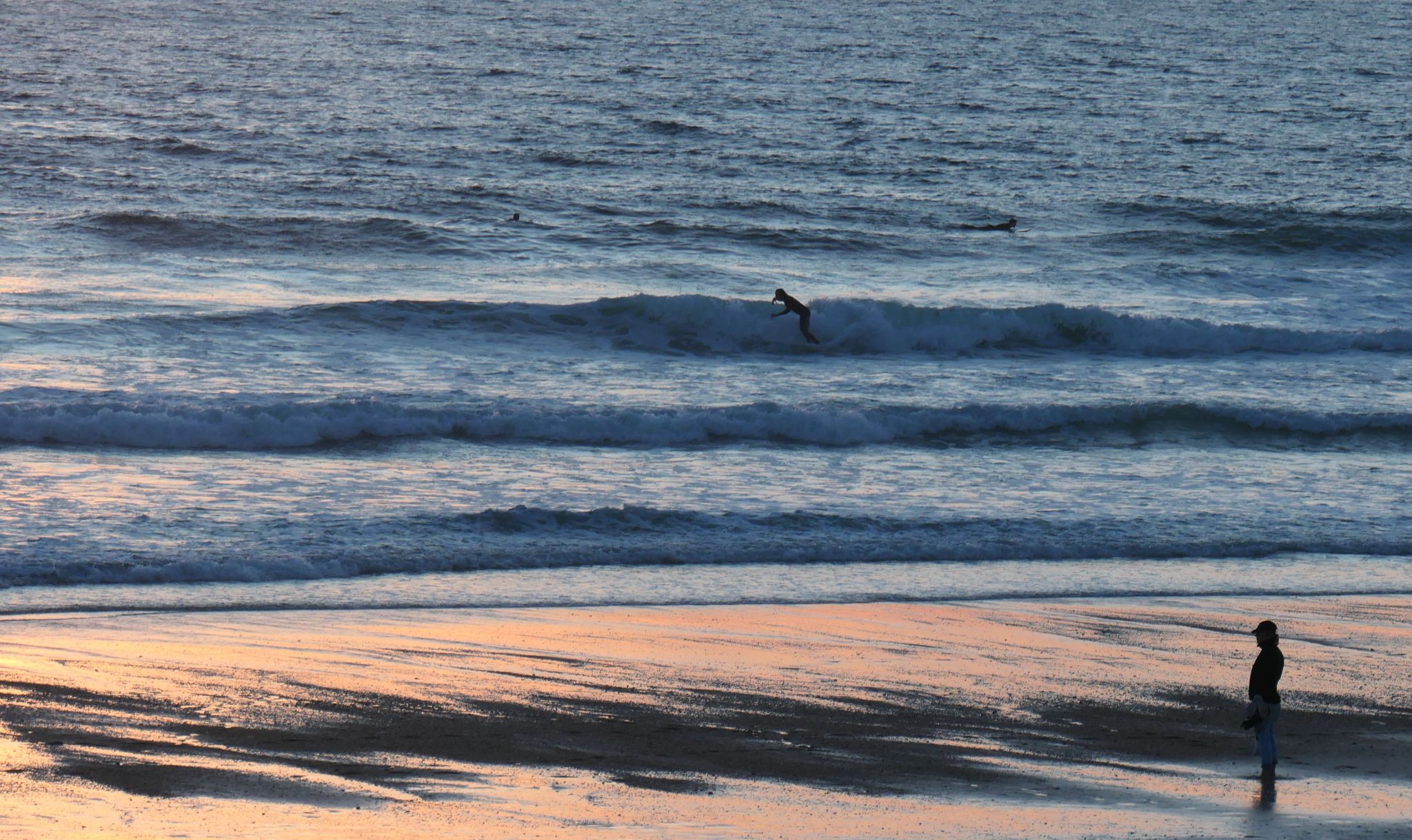 Eines Nachmittags gönne ich mir einen Surfkurs. Bei Fish and Twins bemühe ich mich nach Kräften, das große Foamie-Board mit Leichtigkeit in die Wellen zu bringen – und scheitere. Ungefähr hier beschließe ich, meinen Surf-Versuchen 2024 den Titel „Schöner Scheitern“ zu verleihen. Acht Jahre nach meinem ersten Surfkurs (Vincent’s Alternative Surf School, Vieux-Boucau) nennt mich der heutige Coach “Beginner”. Es kratzt überhaupt nicht an meiner Ehre, wo ich doch eh schon Schwierigkeiten habe, jemanden mit dem Aussehen des jungen George Michael ernst zu nehmen – zumal sie hier (nomen est omen) im eineiigen Doppelpack auflaufen. Ich lasse es für den Moment gut sein und genieße lieber ein paar Sonnenuntergänge.