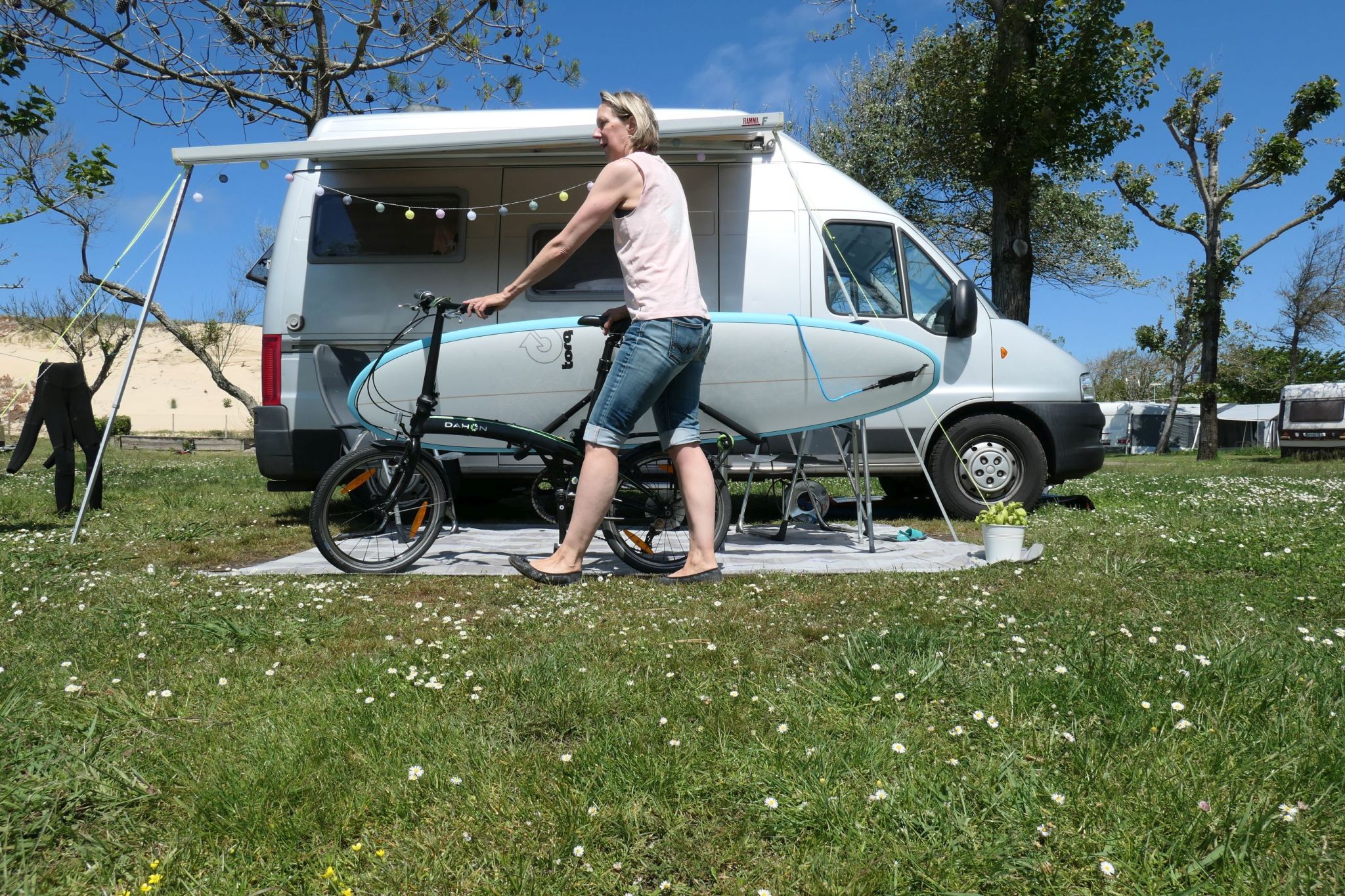 Back to the roots means getting back to Vieux-Boucau. In early Hector-years, I have started surfing right here and at least a bit talented (then, back in my youth…). What used to be a half-deserted campsite some years ago, is now full of German families, all of them more skilled on their boards than me. Figuring out that it is all about material, I take advantage of the Hossegor outlet shops and come up with a new surf board.