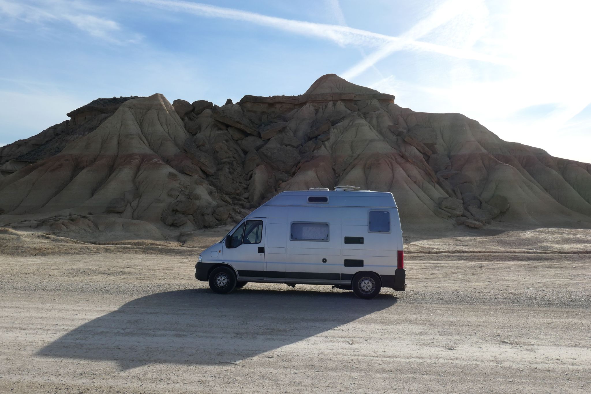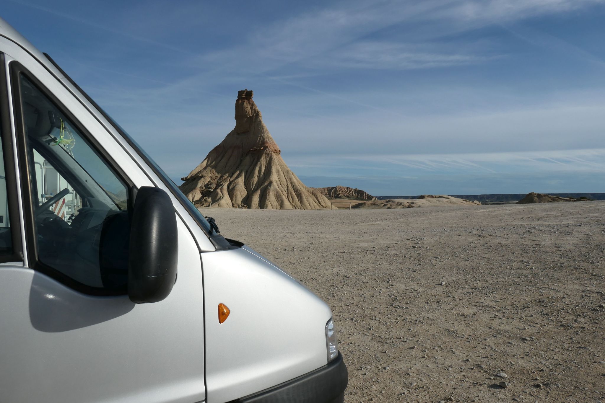 It starts well with umpteen campervans parked beneath ancient caverns. Modern alternative lifestyle meets leftovers from last century, or so it seems. Even before entering the natural resort of Bardenas Reales, I congratulate myself for being here, thanks to the particular setting.