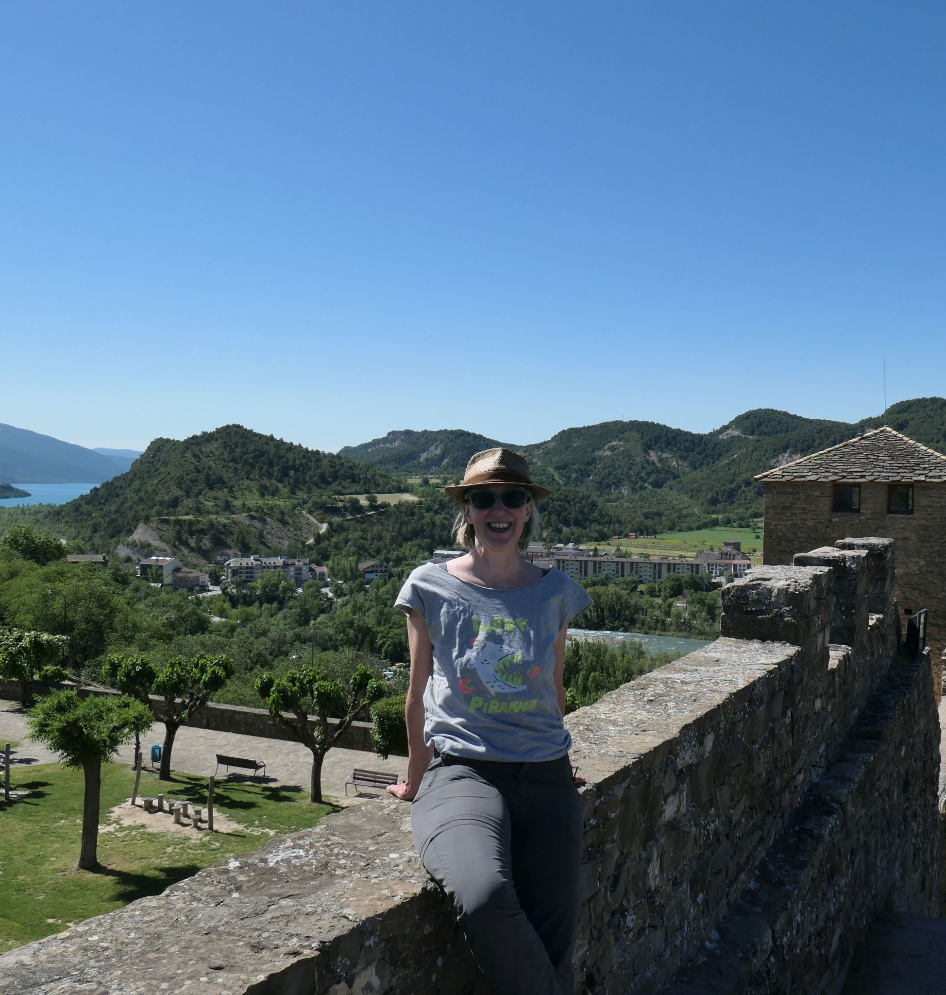Die Gegend hier ist traumhaft für Wanderungen aller Art, und vermutlich führt mich das eines Tages wieder hierher. Im Moment habe ich keine Lust, mit Hector 30 km Anfahrt zu einem Wanderparkplatz in Angriff zu nehmen – stattdessen laufe ich lieber nach Aínsa.