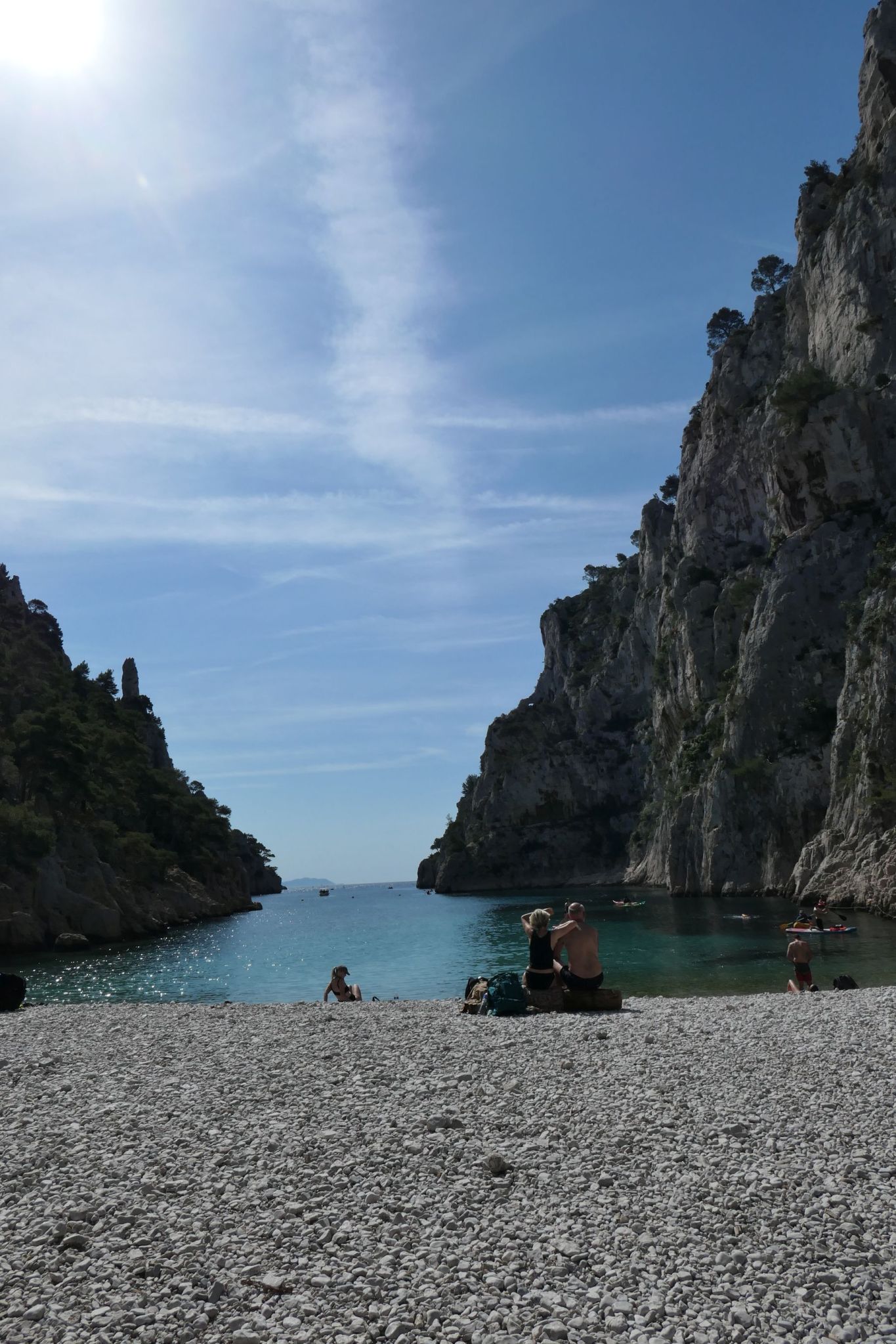 Time-out for paradise is half past ten – from there on, a steady stream of hikers plus uncounted kayaks shuffle in, changing the setup from magical to well, nice. Consequently, I move on, pick up Linda and spend a common week at Bormes-les-Mimosas with her.