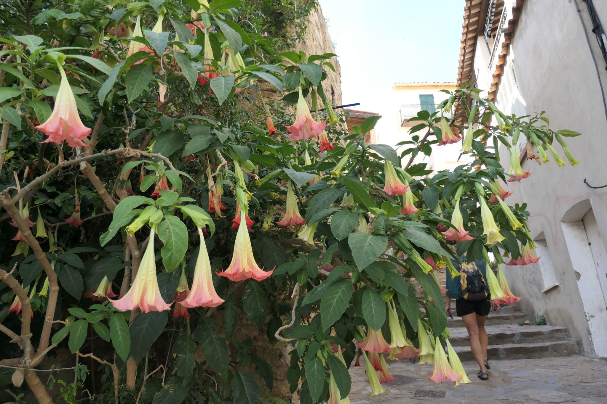 Natürlich sind wir nicht nur faul, sondern auch hungrig. Und so genießen wir Dinner am Hafen und in der Altstadt, die (Ehrensache) ordentlich geblümt daherkommt.