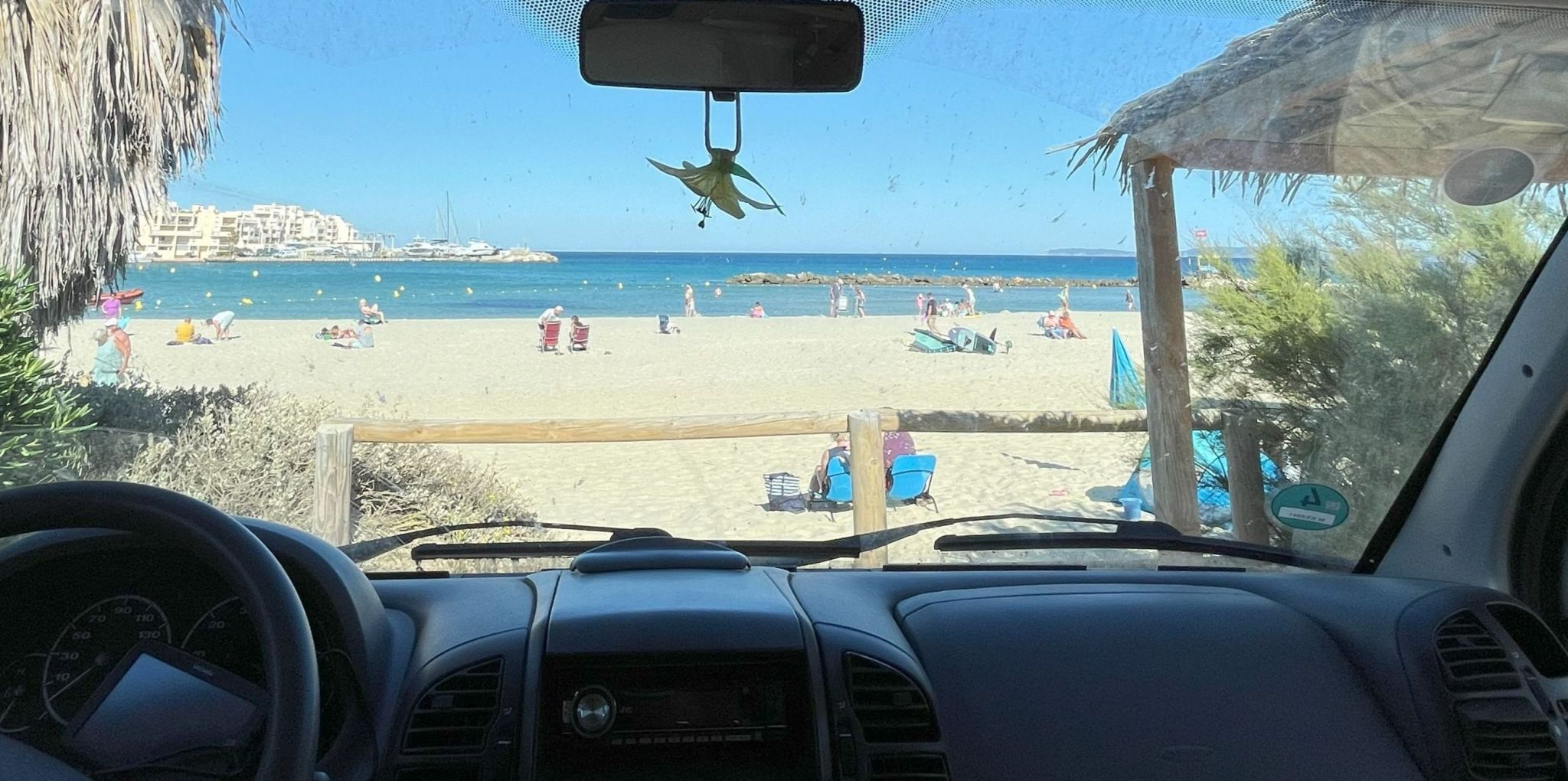 Ab halb elf trudeln immer mehr Menschen ein, und ich ziehe weiter. Eine ganze Woche lang gibt es Strandurlaub satt mit Linda an der Côte d’Azur. Auch wenn der Campingplatz Camp du Domaine in Bormes-les-Mimosas stark nachgelassen hat, ist es doch herrlich, mit den Vorderrädern fast schon im Meer zu parken.