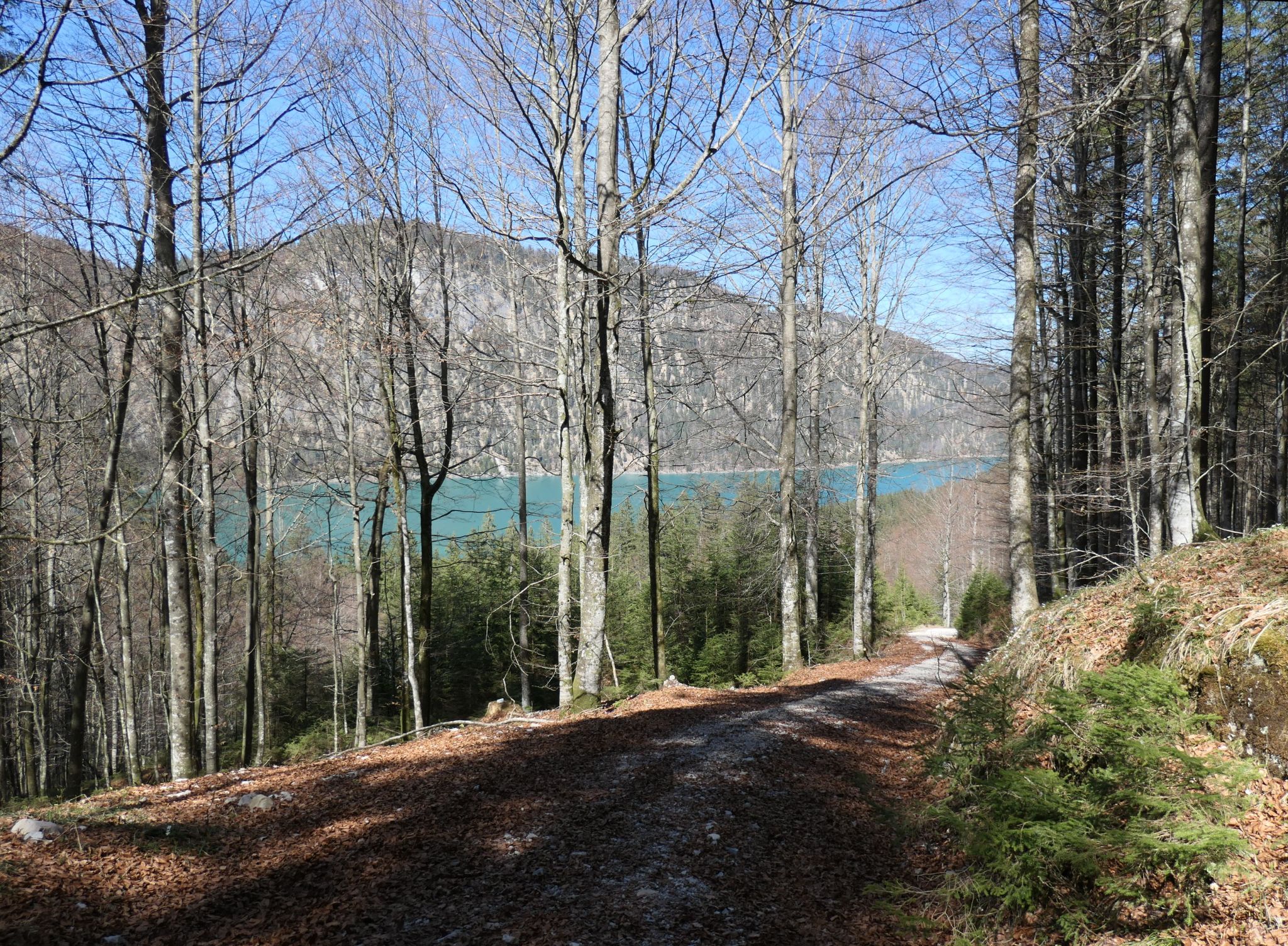 Die Komoot-App kennt sich ja immer nur so mittelgut aus, und so habe ich schöne Aussicht vor allem unten am See. Entlang meines Anstiegs zum Grammersberg folgen noch ein paar Blicke auf die umliegenden Berge, der Rest bleibt hinter Bäumen verborgen.