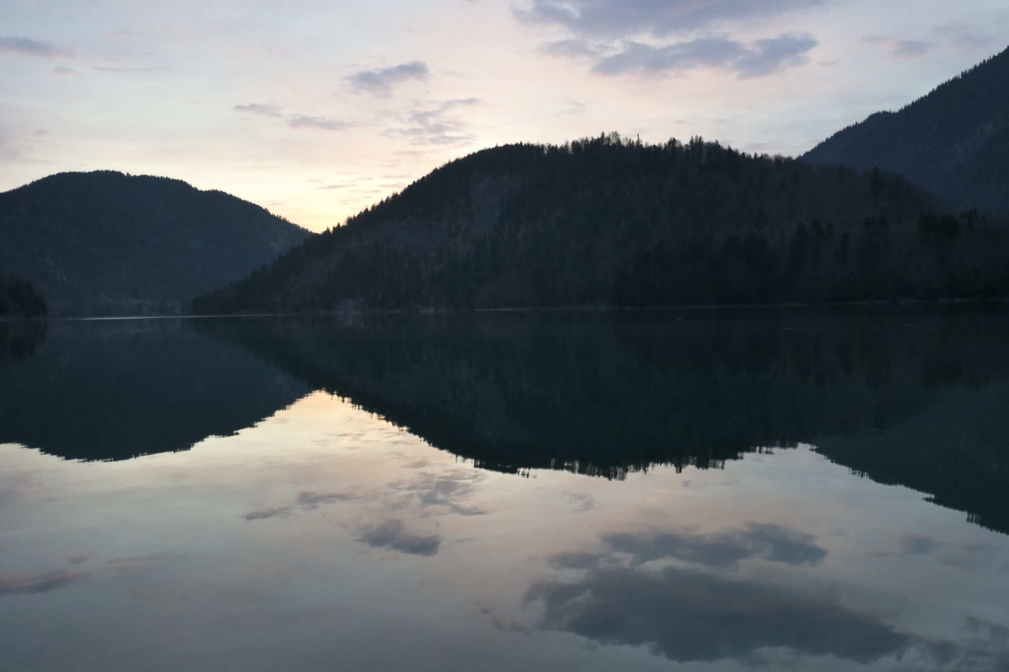 This is the moment for the Western part of the Sylvenstein reservoir, looking straight west. I love sunsets like this, taking umpteen pictures of the scenery. It reminds my of Norwegian’s Fjords, without ever haven seen them – guess I should talk Hector into a Northern route in one of the upcoming years.