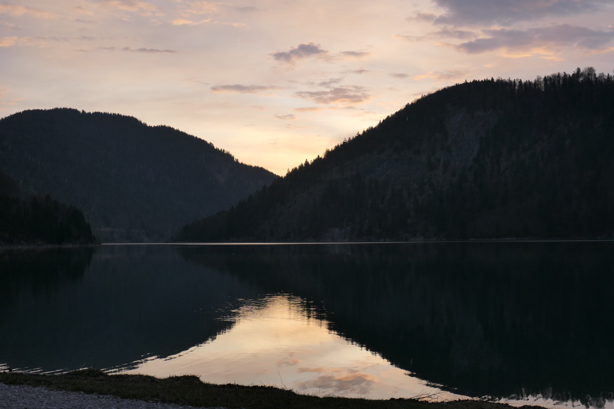 All it takes is throwing in hiking shoes, fresh water and blankets. The engine gets going and shortly afterwards, I find myself at the Sylvenstein lake. It is a simple camper parking among the trees of a light forest, right around the lake’s shore, and an all-time-favourite to Hector an me.